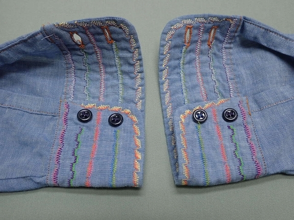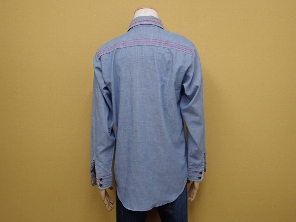 Vintage Shirts シャンブレーシャツです。記載はありませんが作りなどからUSA製だと思われます。ハンドメイド刺繍デザインです。素敵にお使い頂けると思います。気になる方は是非ご検討下さい。 | |