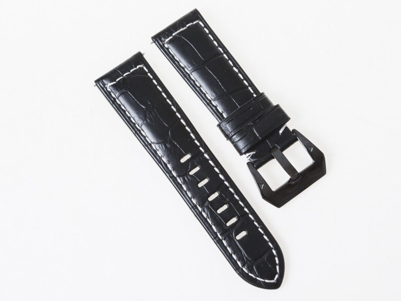 LDL1081# 汎用 本革 腕時計 ベルト ブレスレット バンド 交換 ブラックバックル/幅26mm/ワニ革風 ブラック AFA-37297