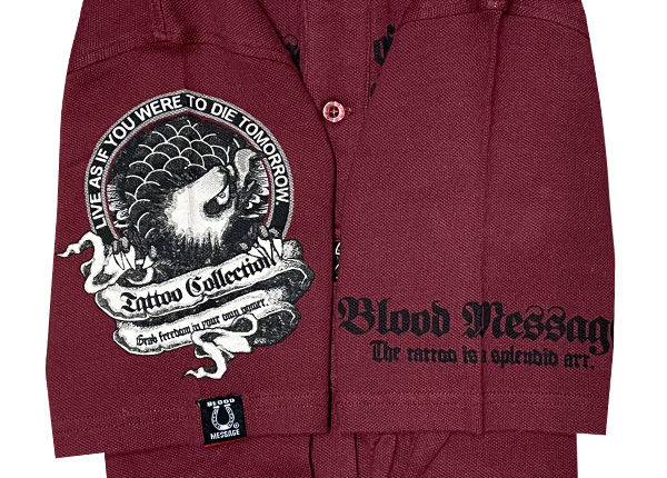 BLOOD MESSAGE 完売商品! ポロシャツ BORDEAUX 40サイズ ちょっと難あり BLPS-101