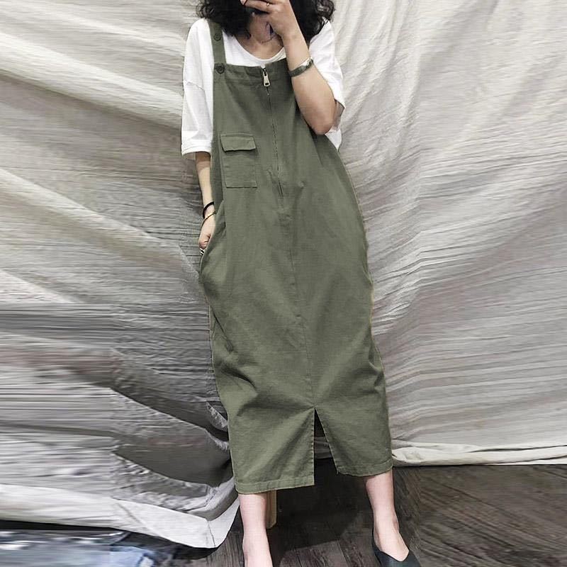 LPBA004春秋レディース おしゃれ サロペット ゆったり オーバーオール スカート(2色L-XL)