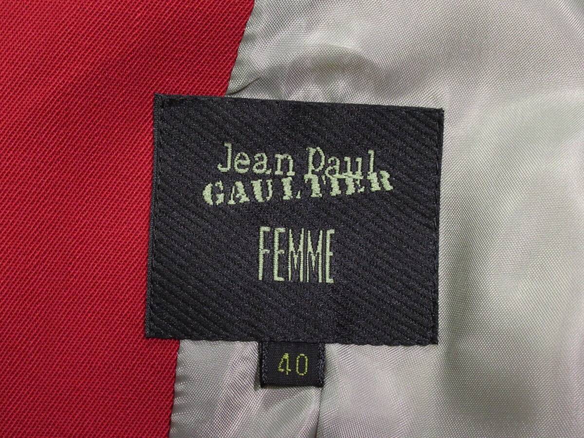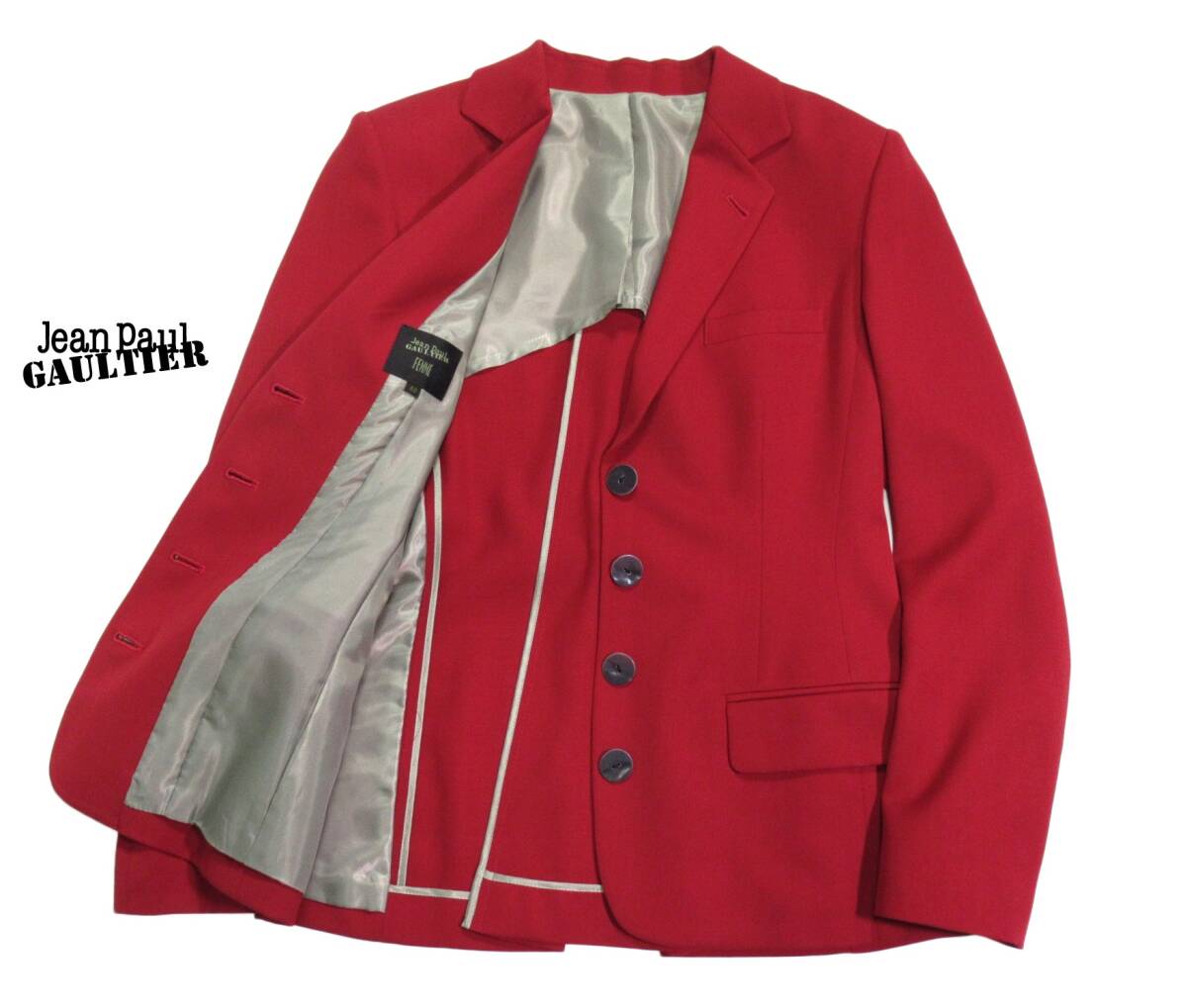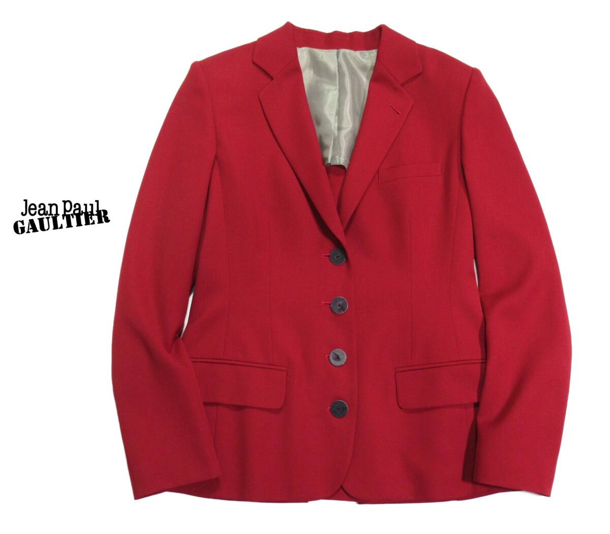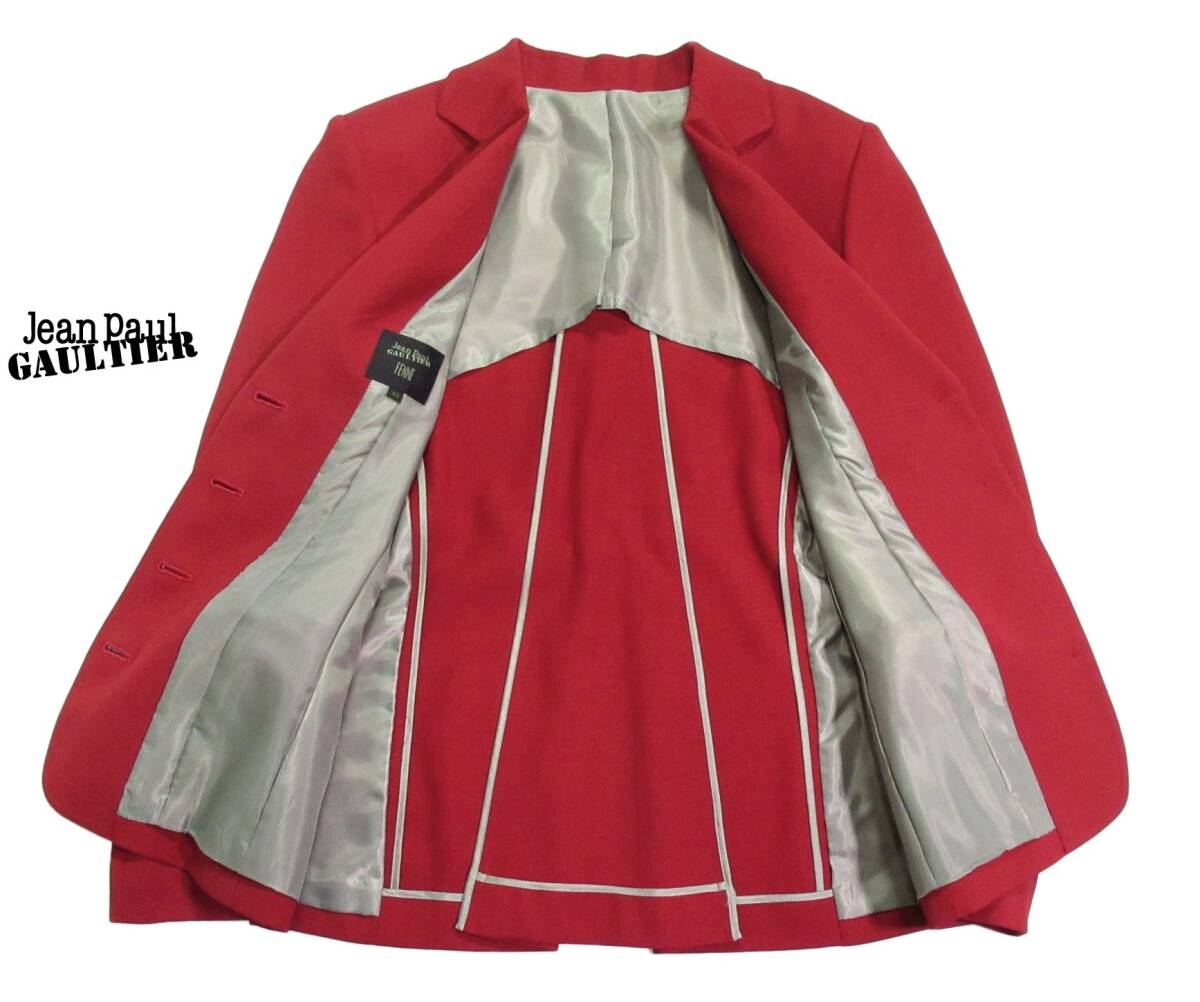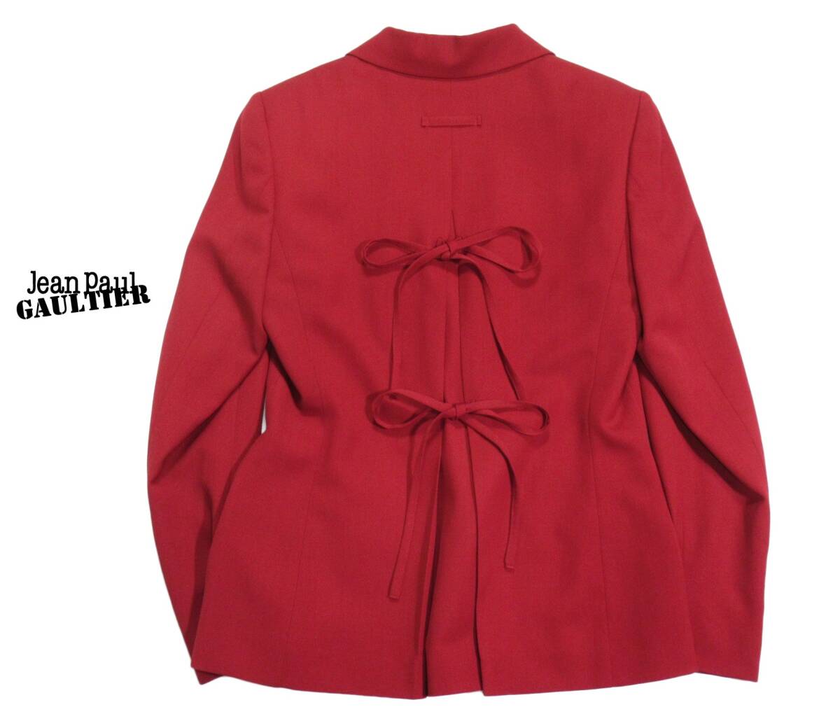ジャンポールゴルチェファム ジャケット サイズ表記:40 お色:レッド 素材: 表地 毛100% 裏地 ポリエステル 平置き実寸で 肩幅40 身幅50 着丈63 袖丈60㎝位です。 4ボタン、背抜き、ノーベント。 バックリボンが印象的なゴルチェのジャケットです。 美しいカラーも本当に素敵です◎ 経年を考えてもとても綺麗な状態です。 ゴルチェファンの方に是非・・・ |