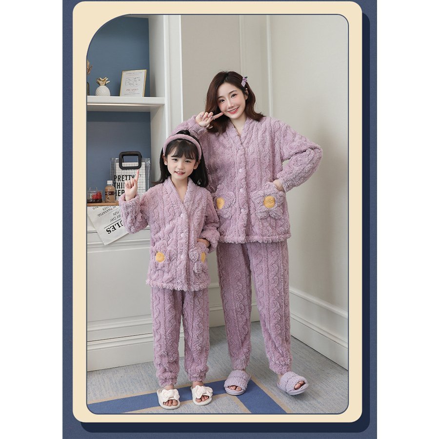 親子ペア パジャマ 冬着 フランネル 防寒抜群 女の子 レディース ルームウェア 暖かい 可愛い ホームウェア ピンク パープル gyma1415