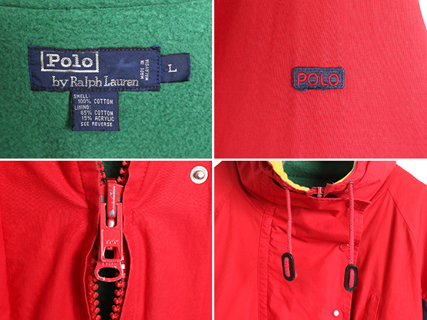 | 商品名 | 90s ★ ポロ ラルフローレン コットン マウンテン パーカー ジャケット メンズ L 90年代 POLO フリース ライナー付き マンパ ハーフ コート |