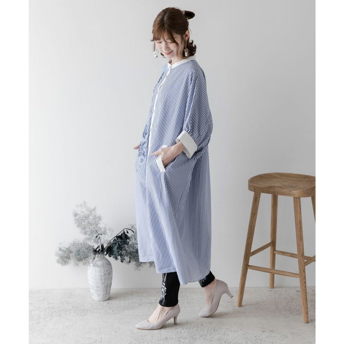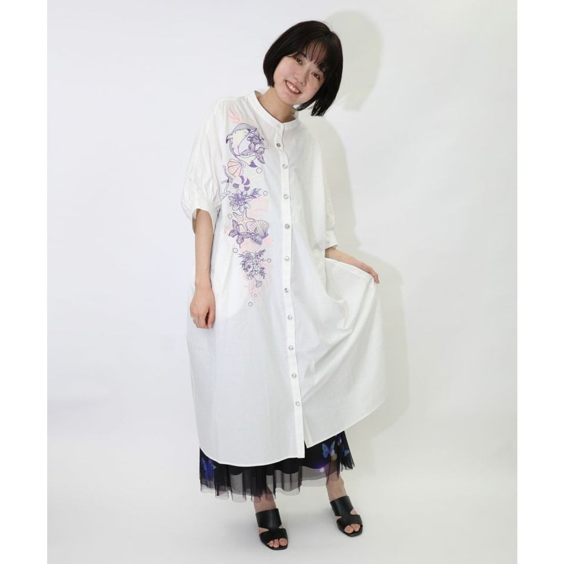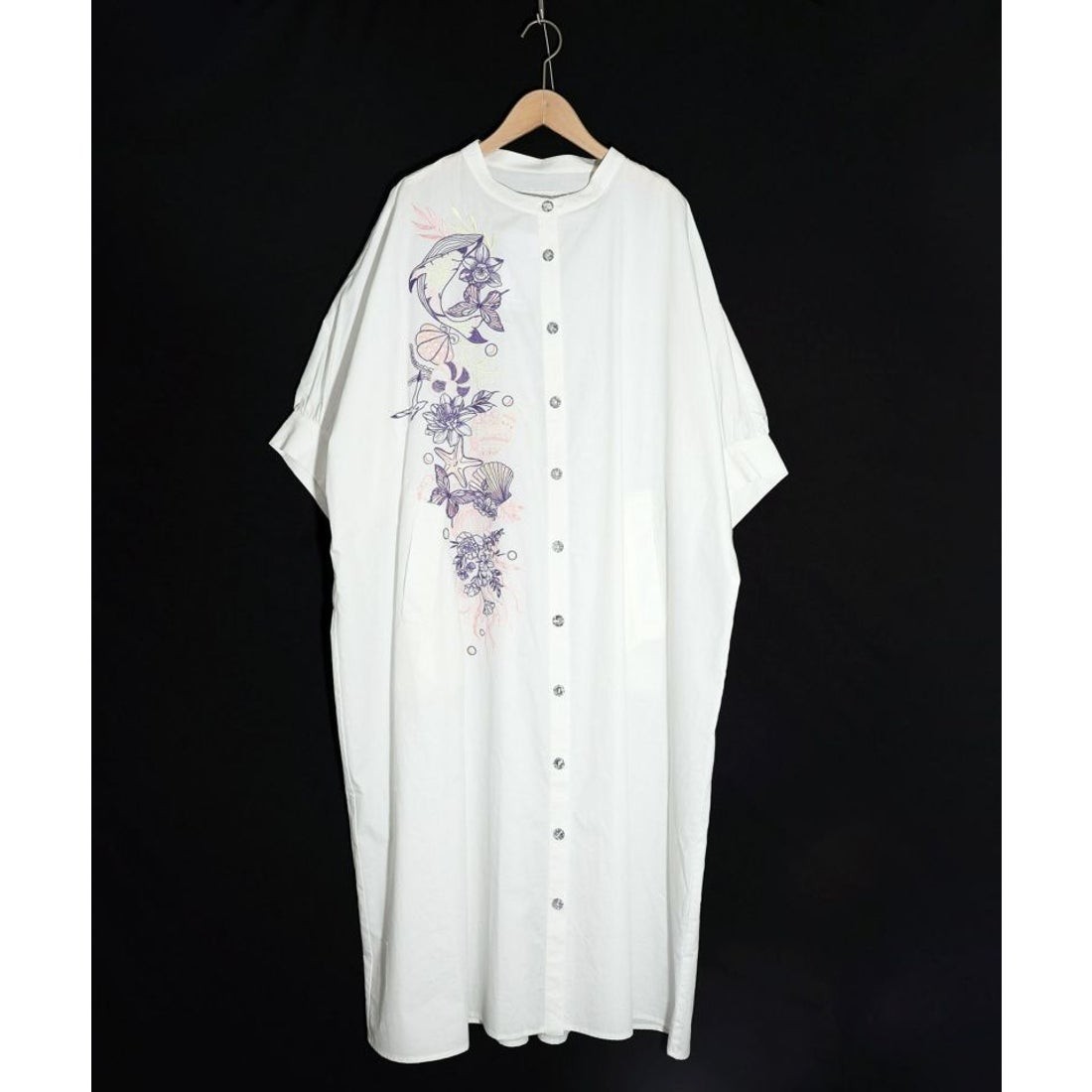 ・商品名: 海のモチーフ刺繍 シャツワンピース