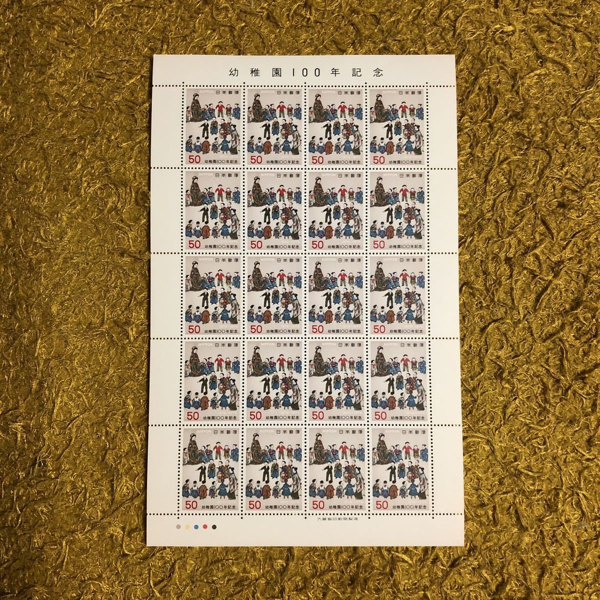 ビンテージ 幼稚園100周年記念 切手☆アンティーク 古民家 骨董 1976 昭和51年 レトロ シート 骨董 郵便 希少 銘版 カラーマーク 児童