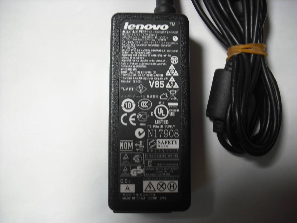 lenovo ACアダプター ADP-40NH B  20V 2A  外径約5mm   電源ケーブル(ミッキー型)付  通電OK