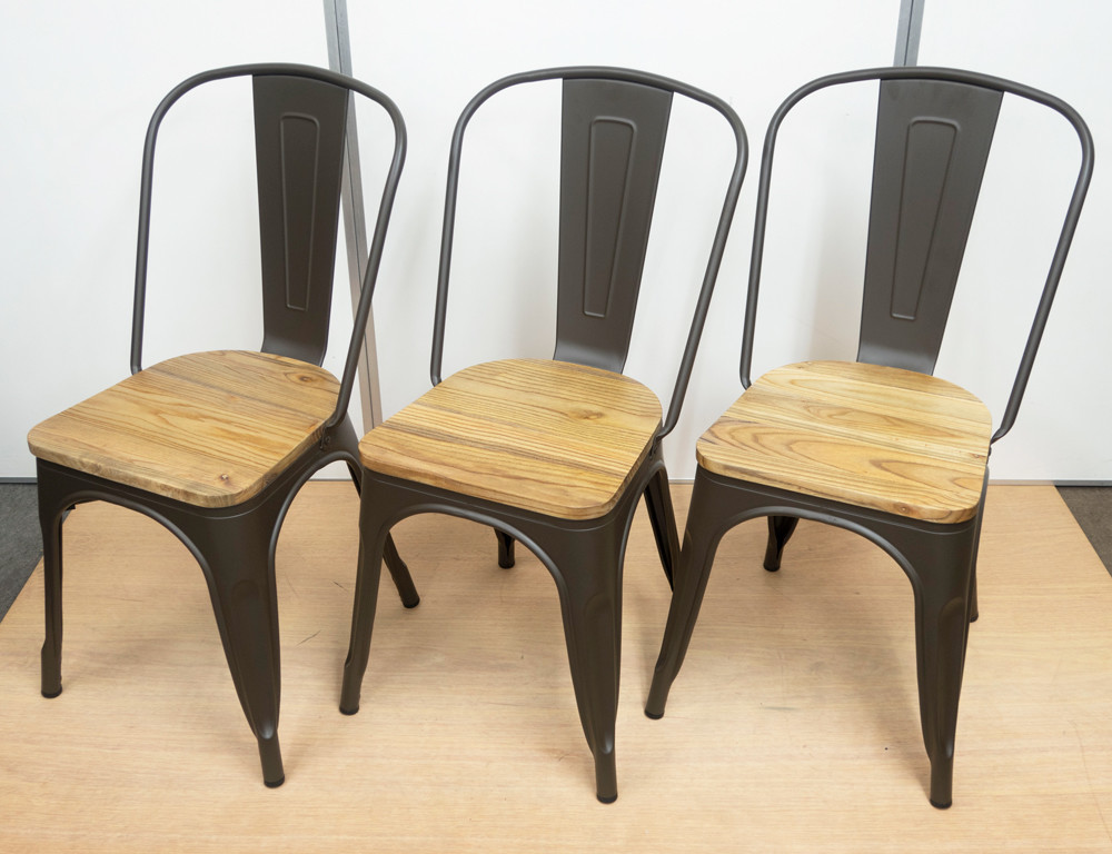 スチールと天然木座面を組み合わせたダイニングチェアです。