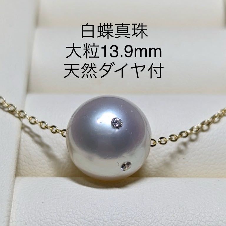 【商品名】天然ダイヤ x4pcs 白蝶真珠 ネックレス