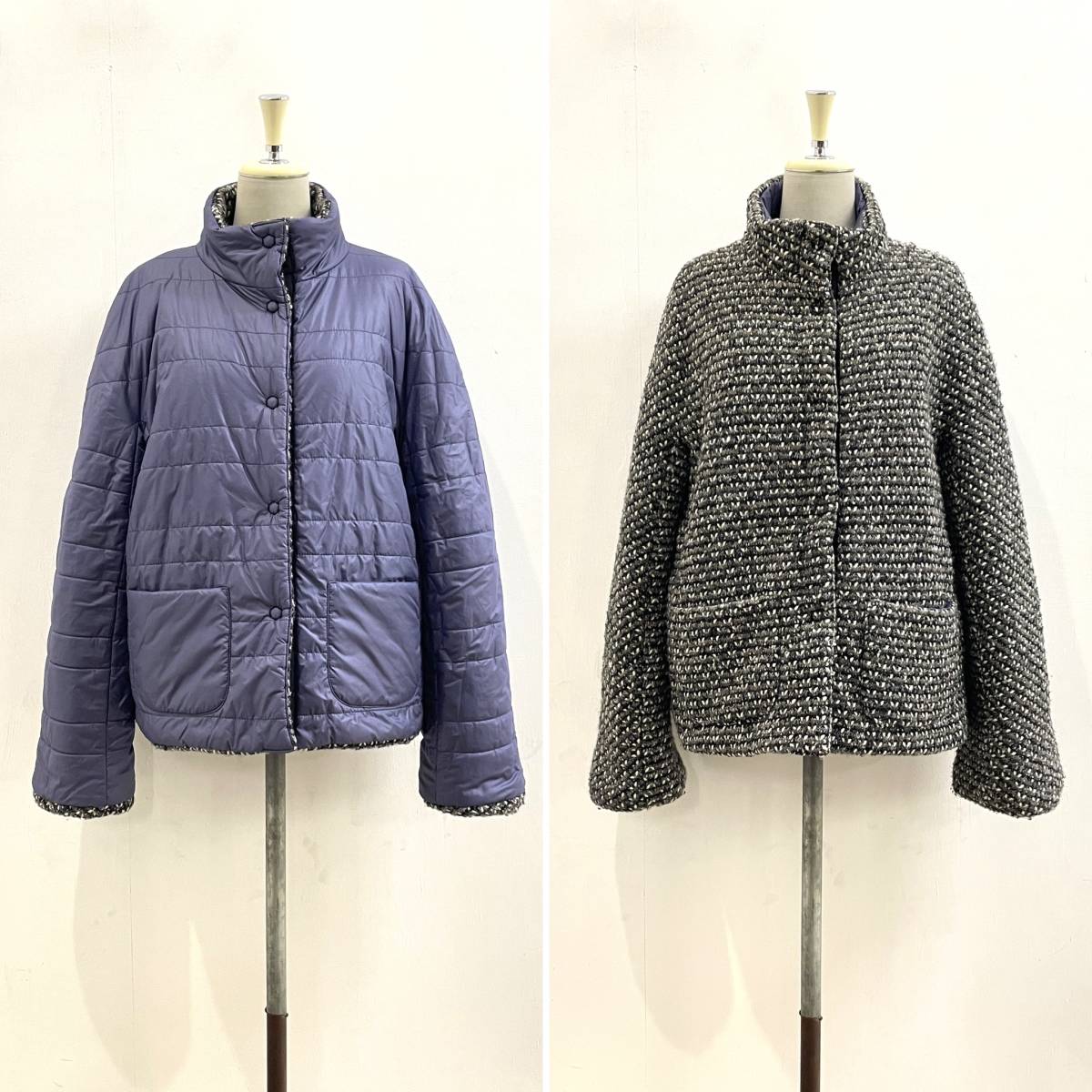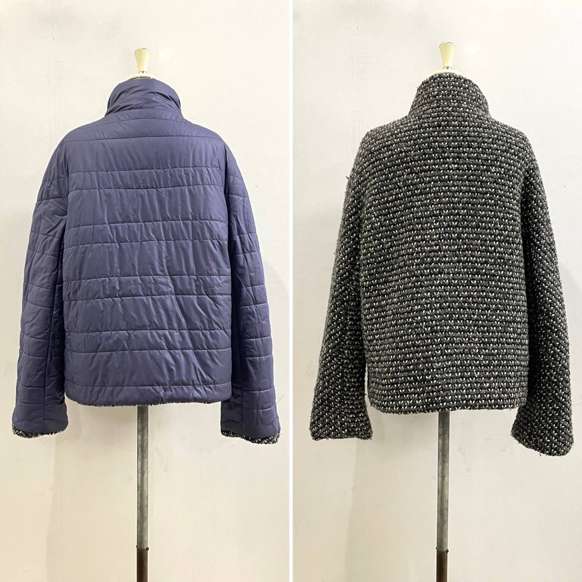 ☆VITTORIA CROCETTA イタリア製 リバーシブル ウールツイード×ナイロン スタンドカラージャケット パープル size44【送料一律/同梱可能】Eの出品です。