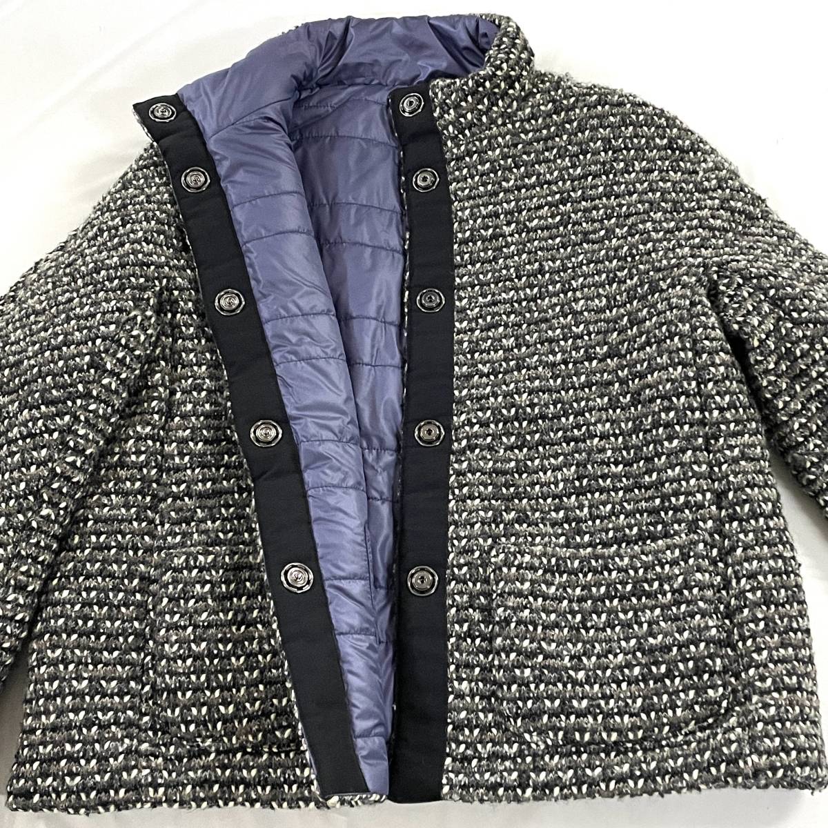 ☆VITTORIA CROCETTA イタリア製 リバーシブル ウールツイード×ナイロン スタンドカラージャケット パープル 44【送料一律/同梱可能】E