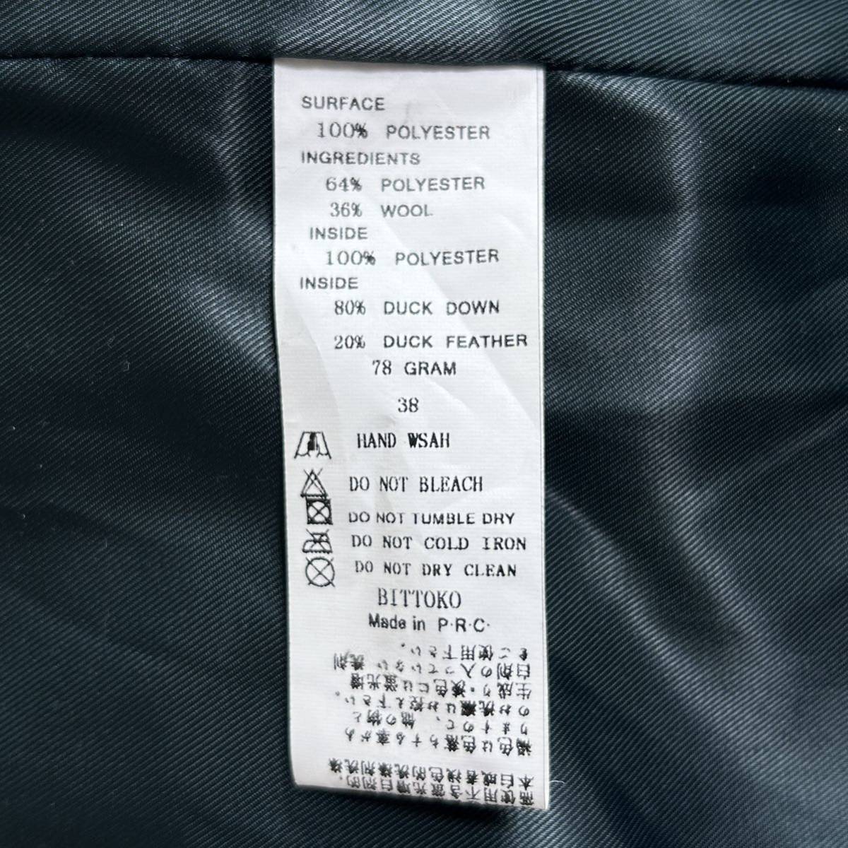 YT1141 BITTOKO ビットコ ダウンベスト サイズ38 ダウン80% フェザー20% アウトドア キャンプ ルームウエア