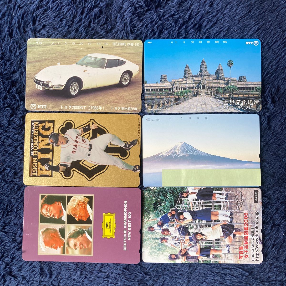 テレホンカード ☆ 廃番貴重 未使用5枚+若干使用1枚 トヨタ2000GT 巨人松井秀喜 富士山 アンコールワット 女子高制服図鑑 カラヤン等