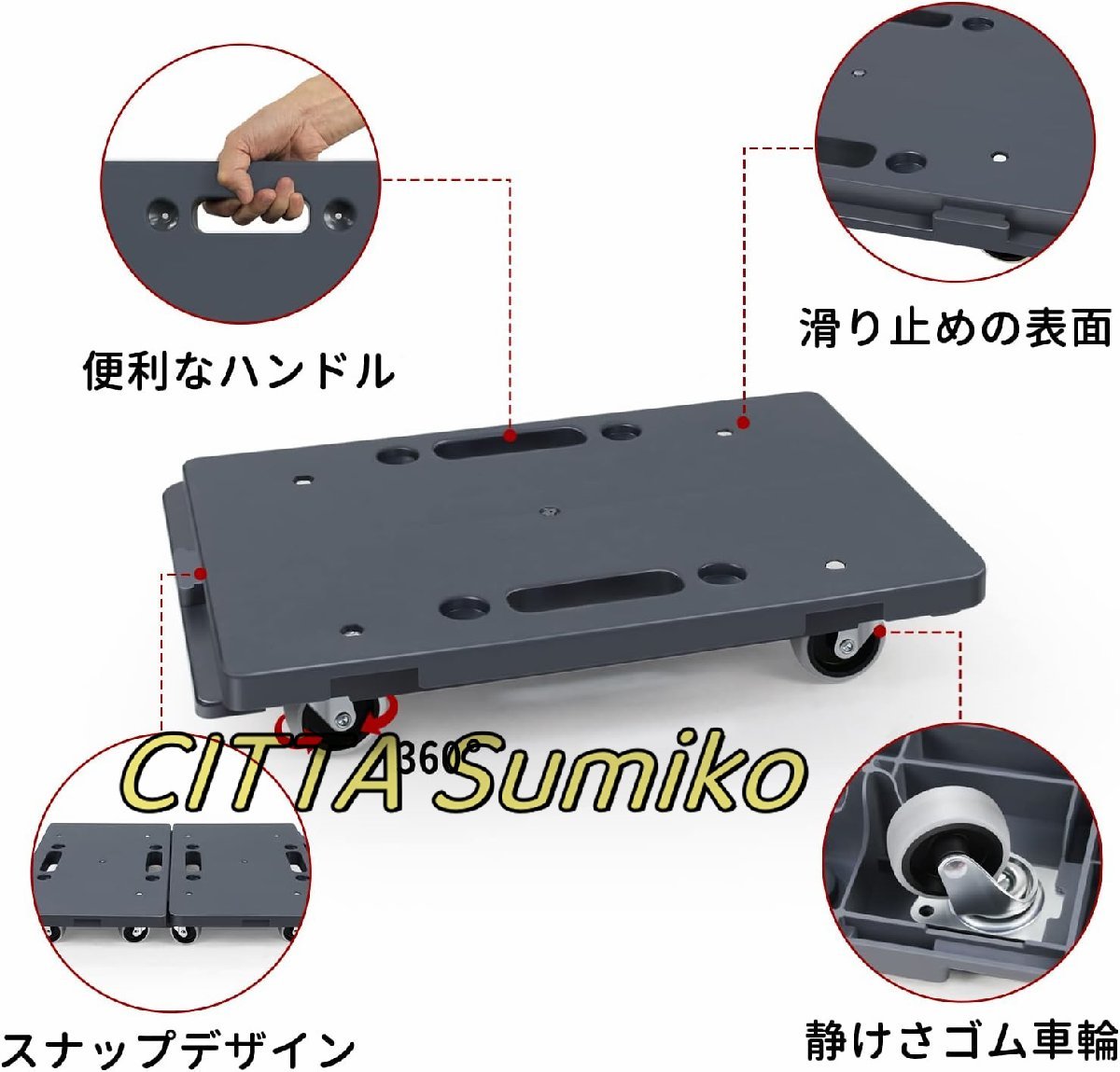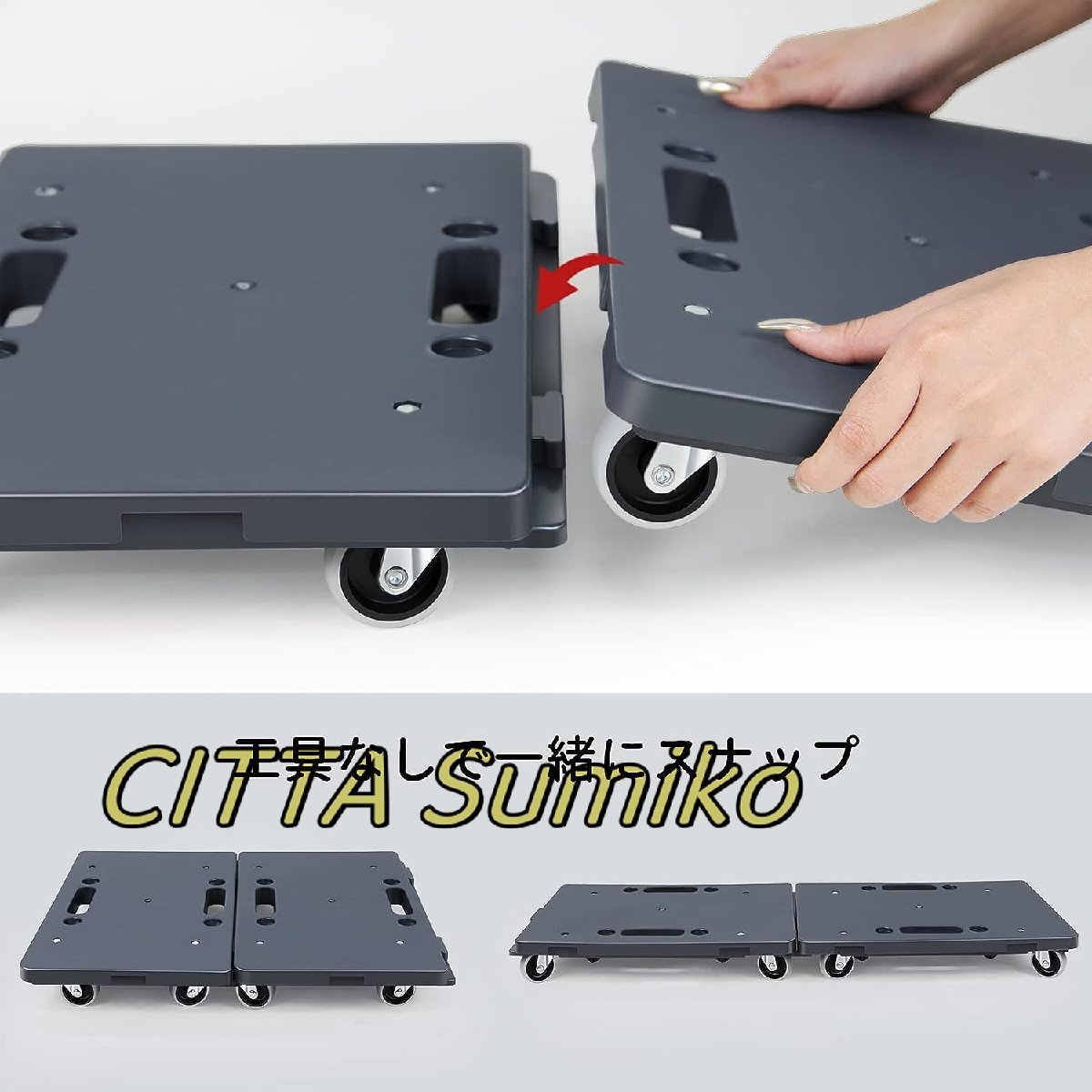人気商品連結平台車41.5×28cm カート キャリー 【4台組】耐荷重200kg 軽量1.25kg 台車縦横連結可能 スタッキング運搬台車 家庭用 グレー