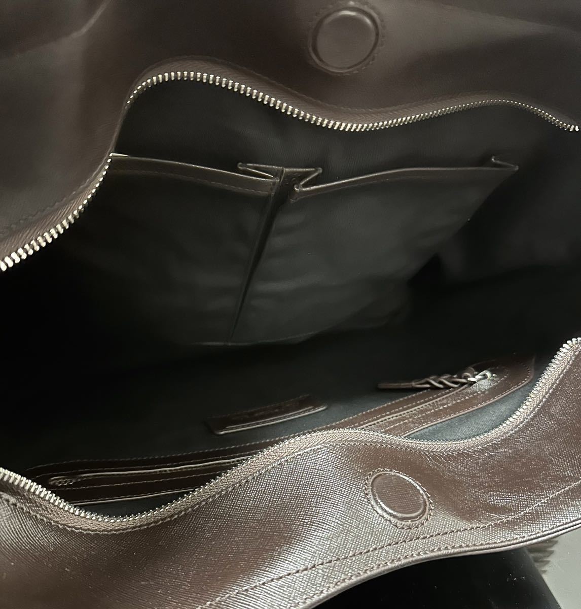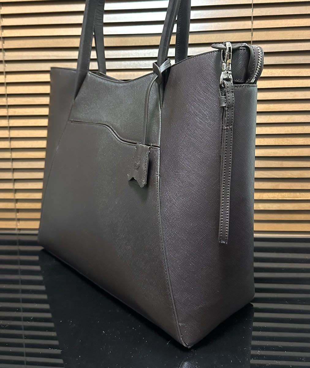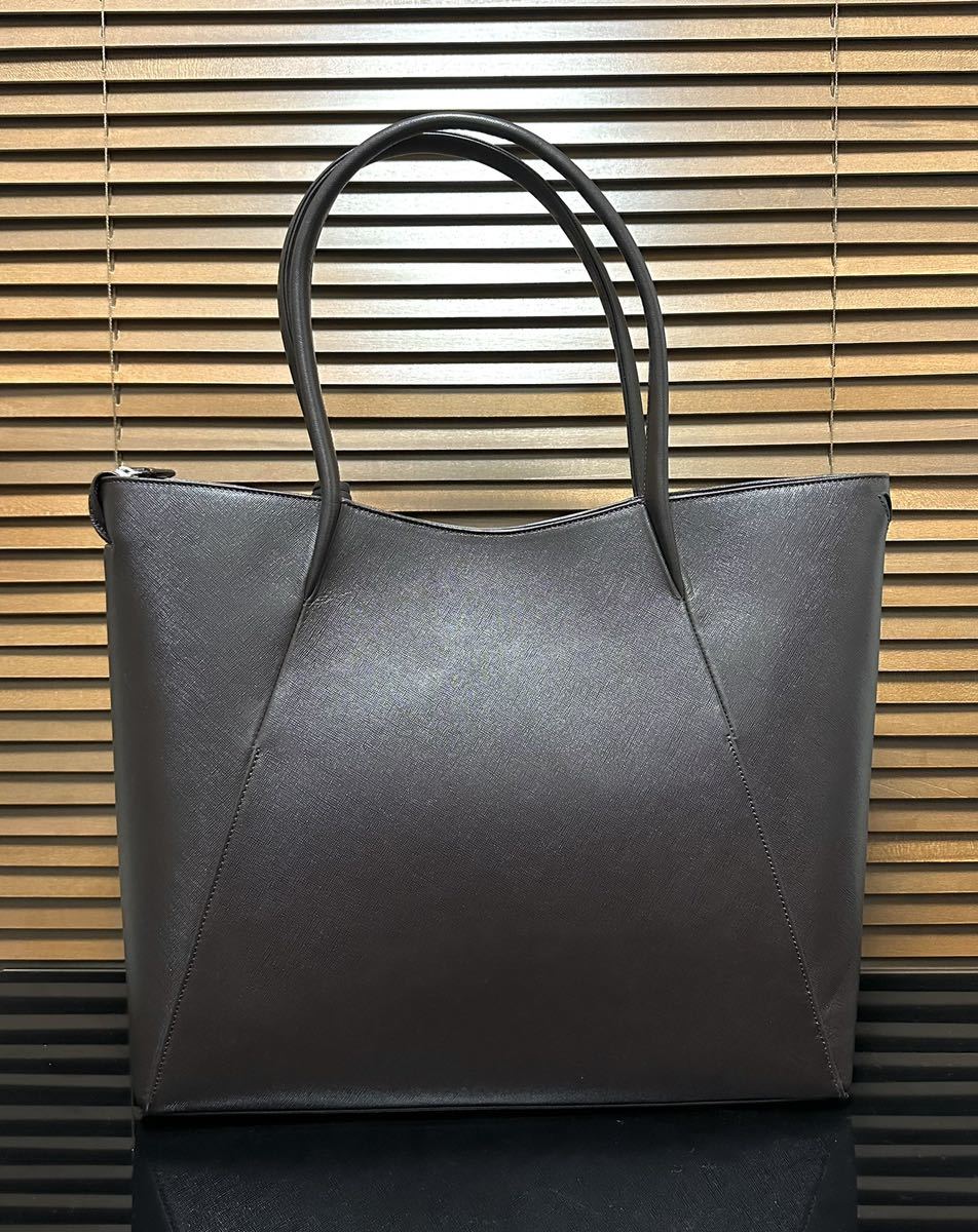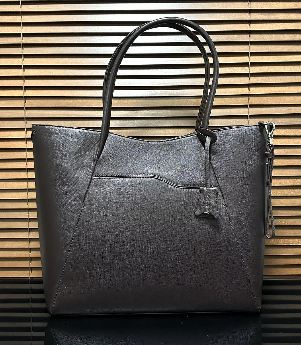 落ち着きのあるシックな角シボ型押しのレザーを使ったトートバッグが登場。