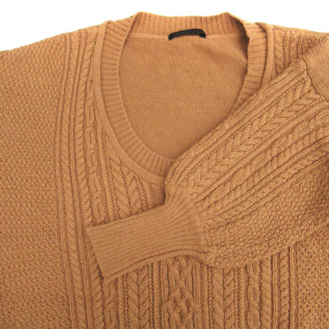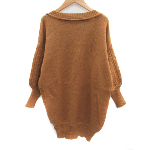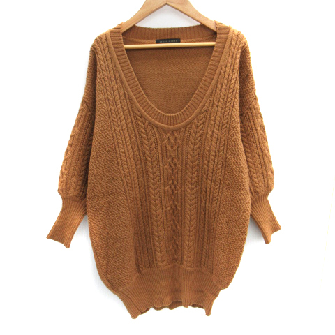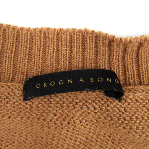 クルーンアソング CROON A SONG ニットチュニック 長袖 Uネック ケーブル編み ウール混 38 ライトブラウン /SM11 レディース