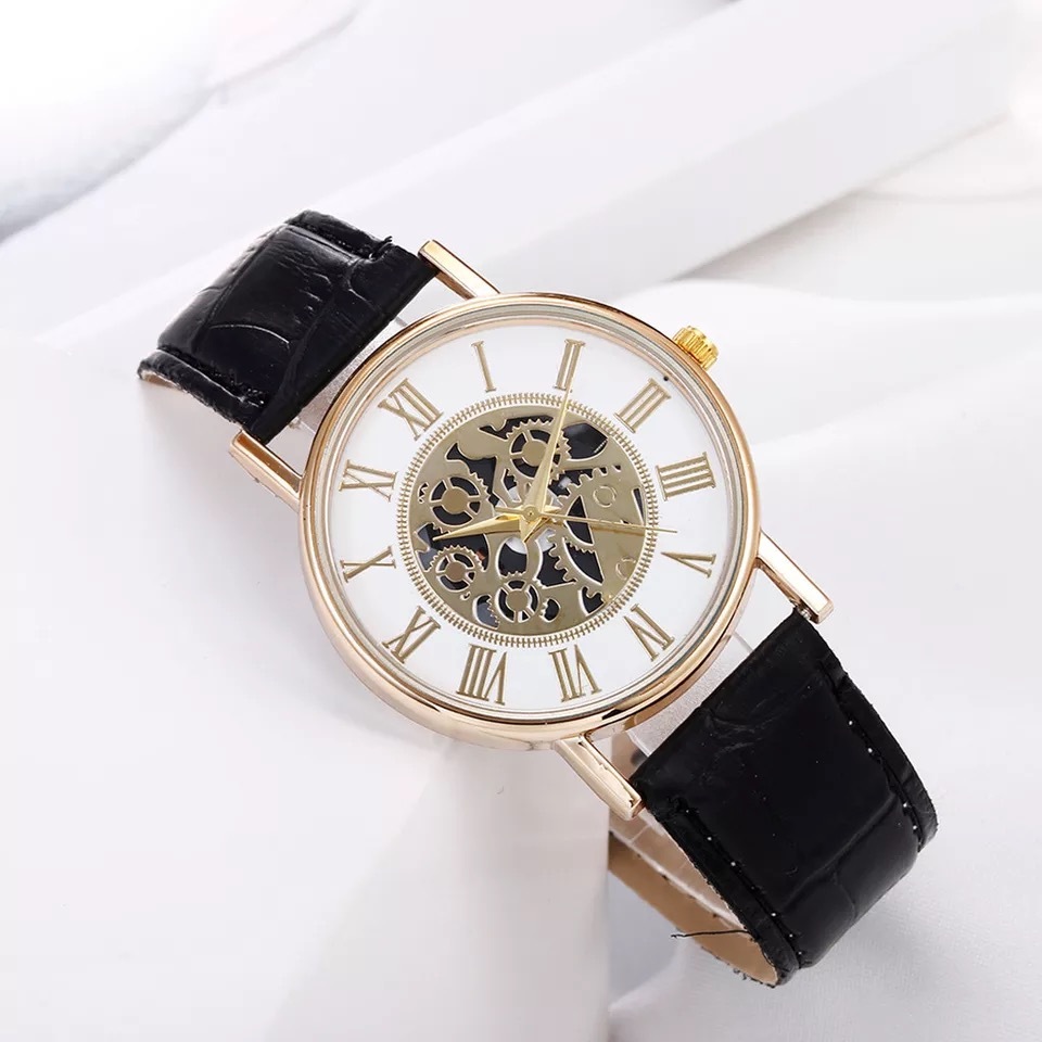 腕時計 ギリシャ文字 アナログ メンズ クォーツ 時計 高品質 レザー ベルト 革 ファッション時計 オシャレ ウォッチ 男女兼用 ブラック
