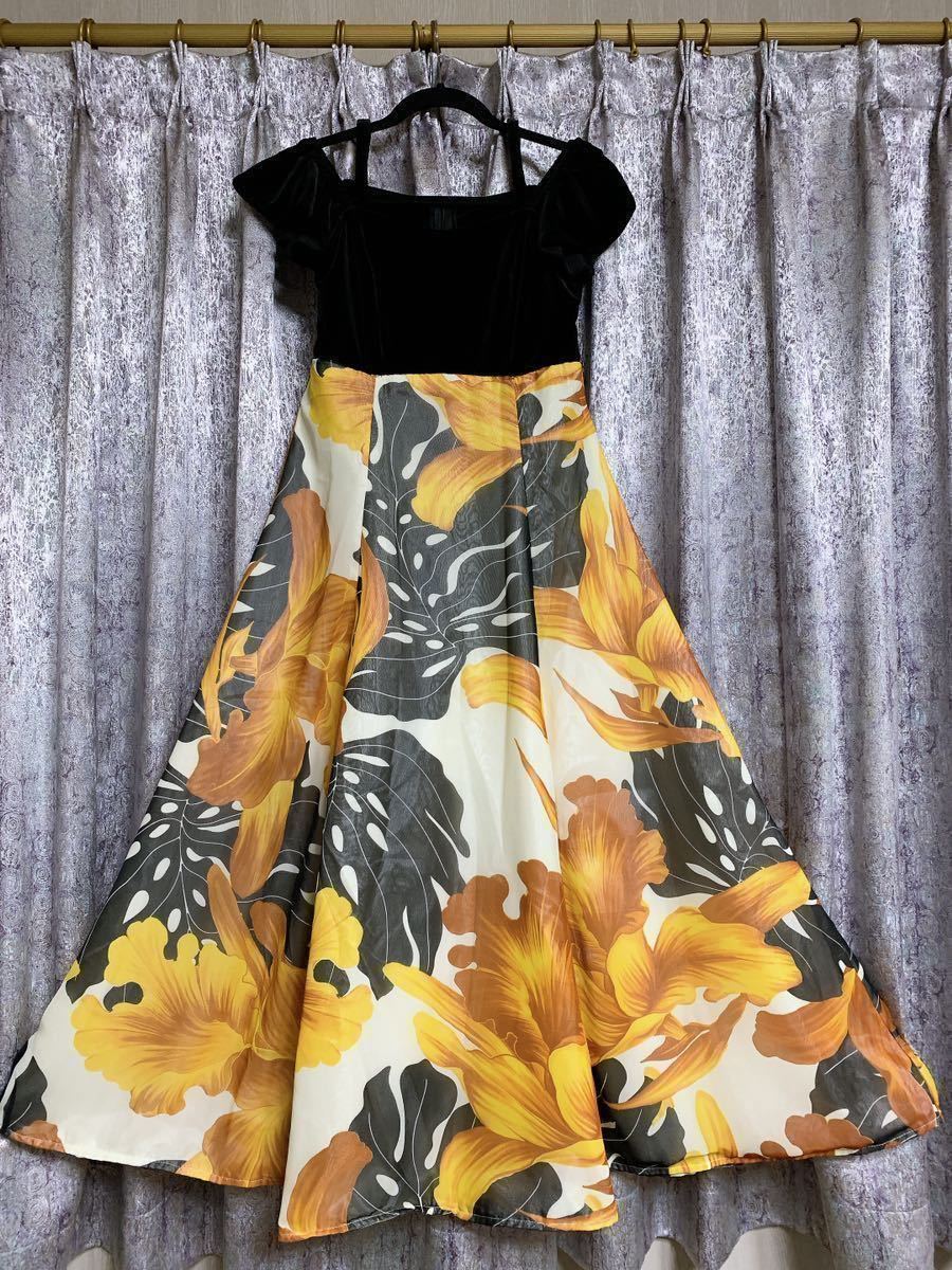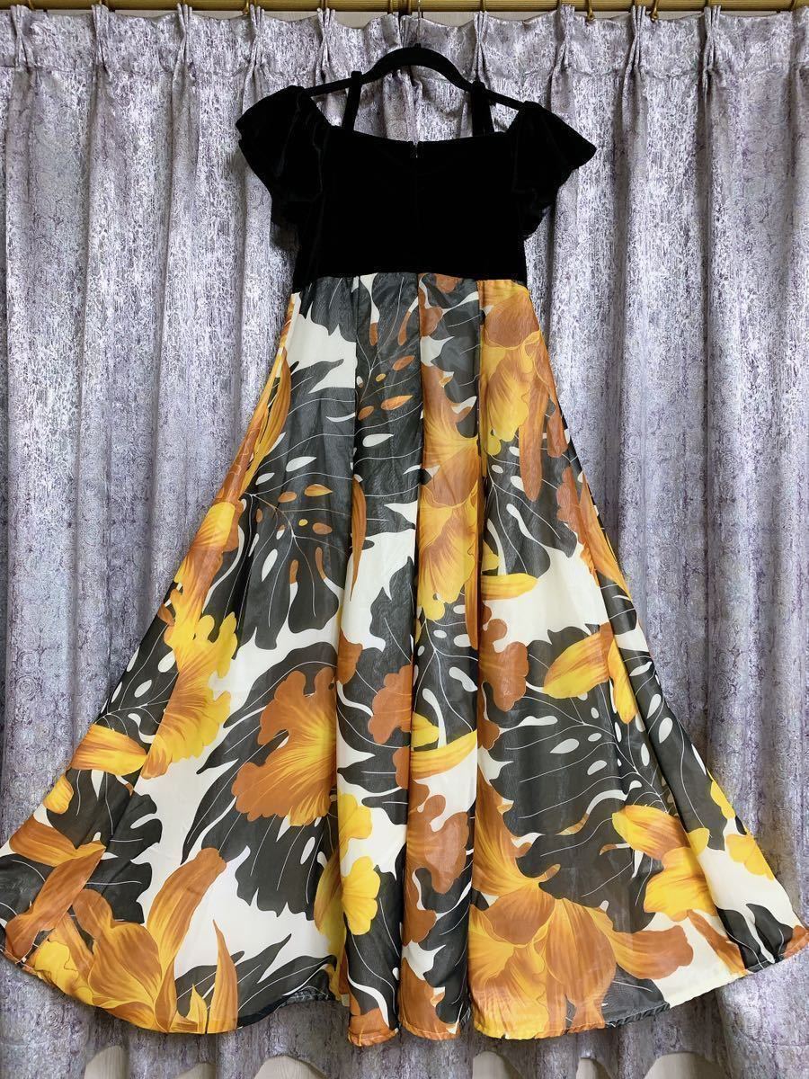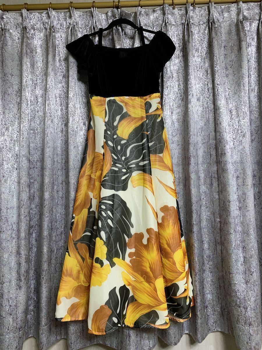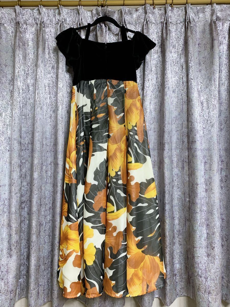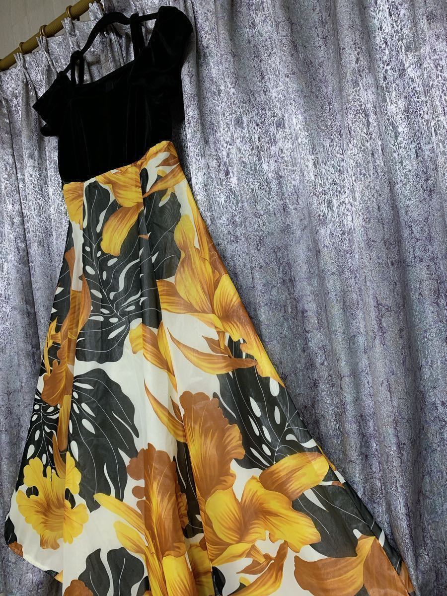 SC431フラダンス有名ハワイアンブランド 安心 信頼 pukalani Fashionの豪華ベロア&シフォンドレスです(タグ切り取りました)