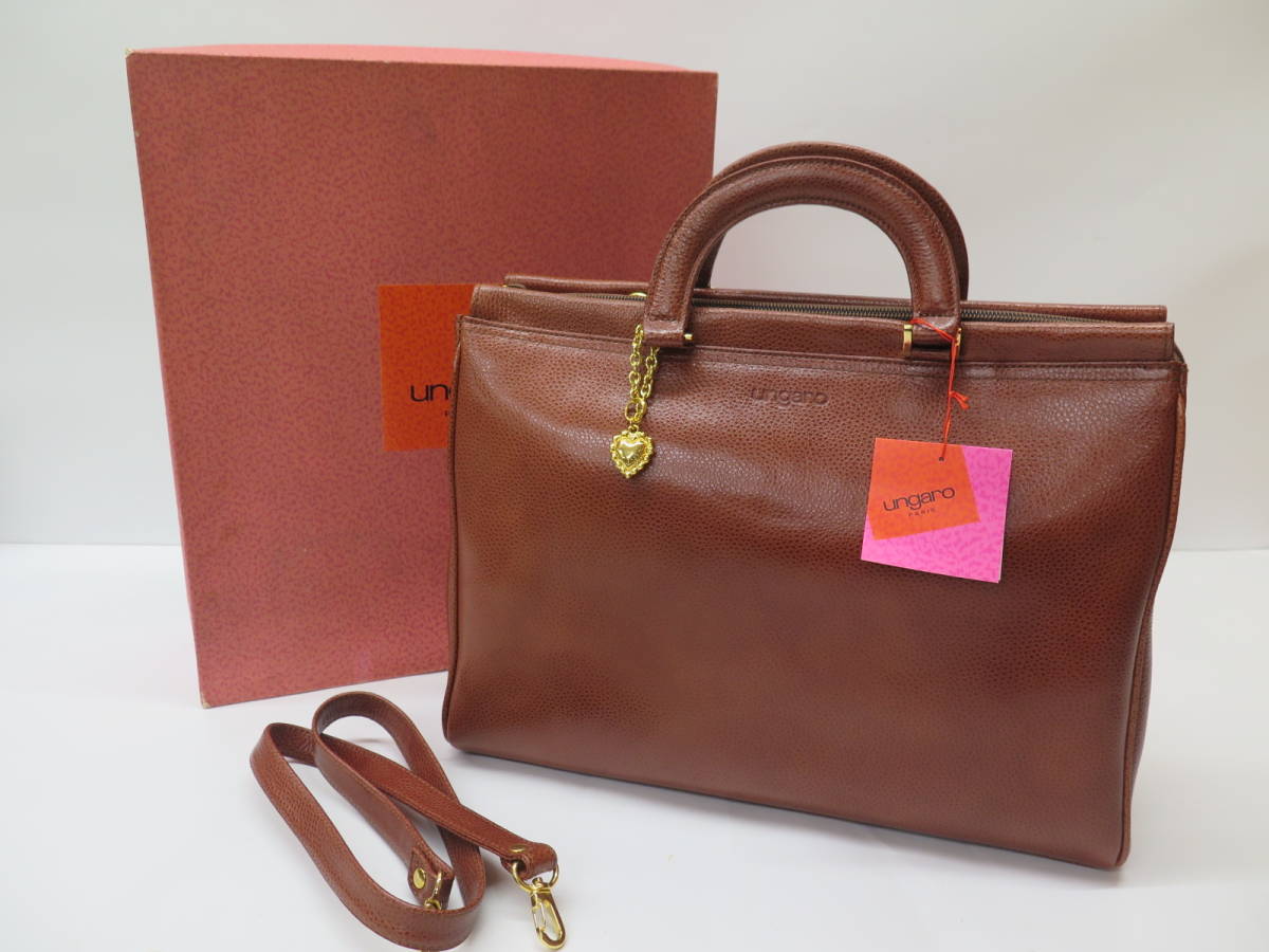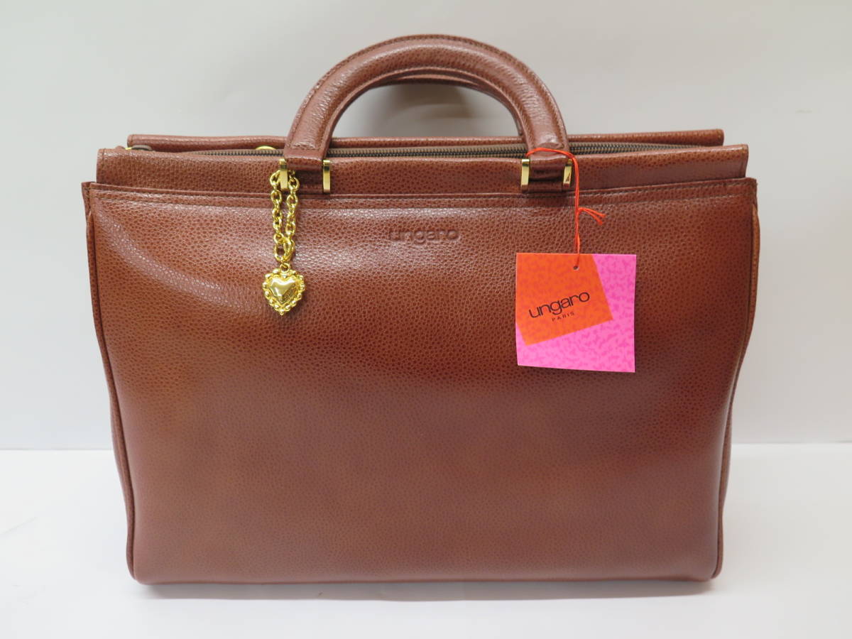 タグが付いたままの美品 Ungaro ウンガロ 牛革レザー2Wayバッグ 茶・ブラウン A4対応 日本製