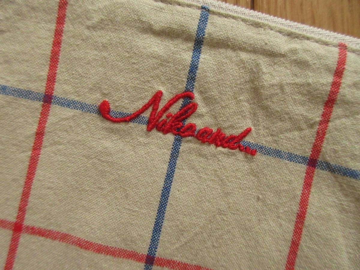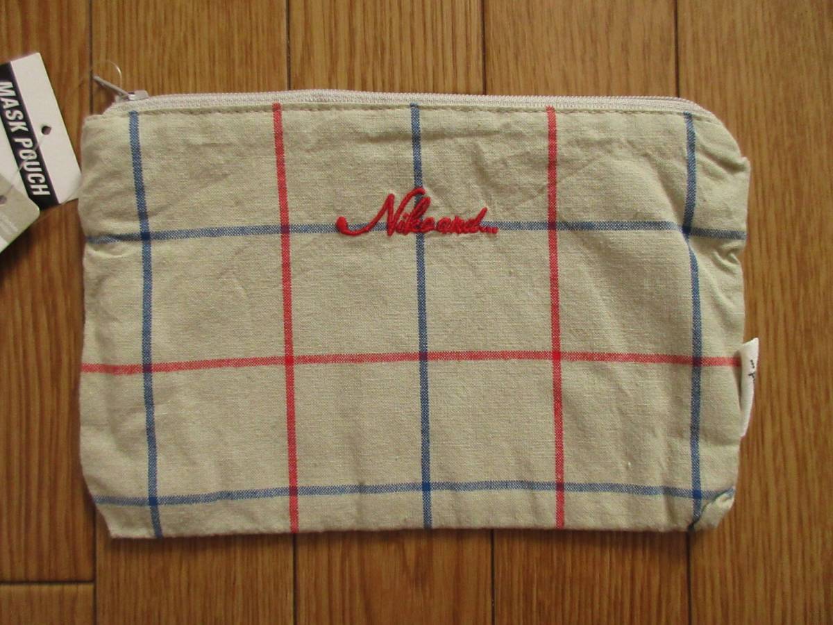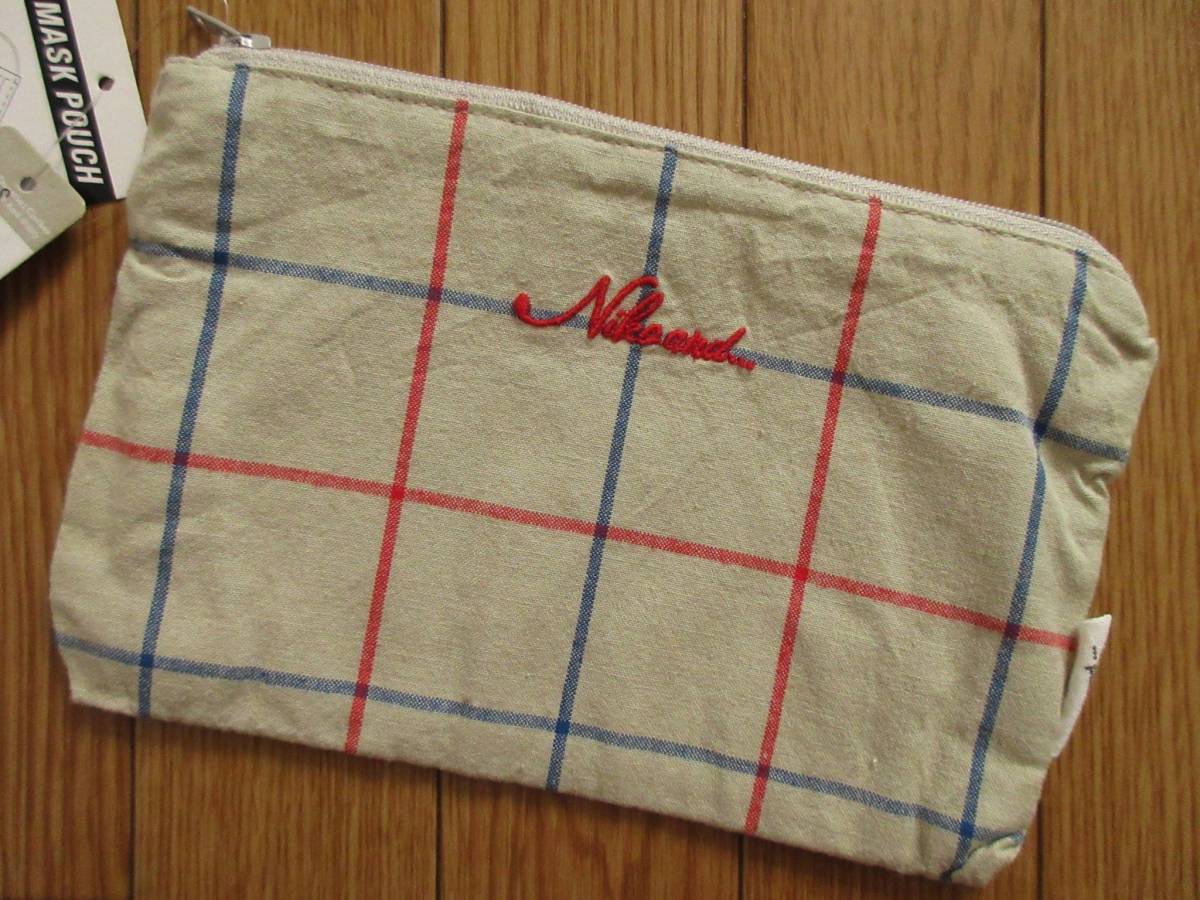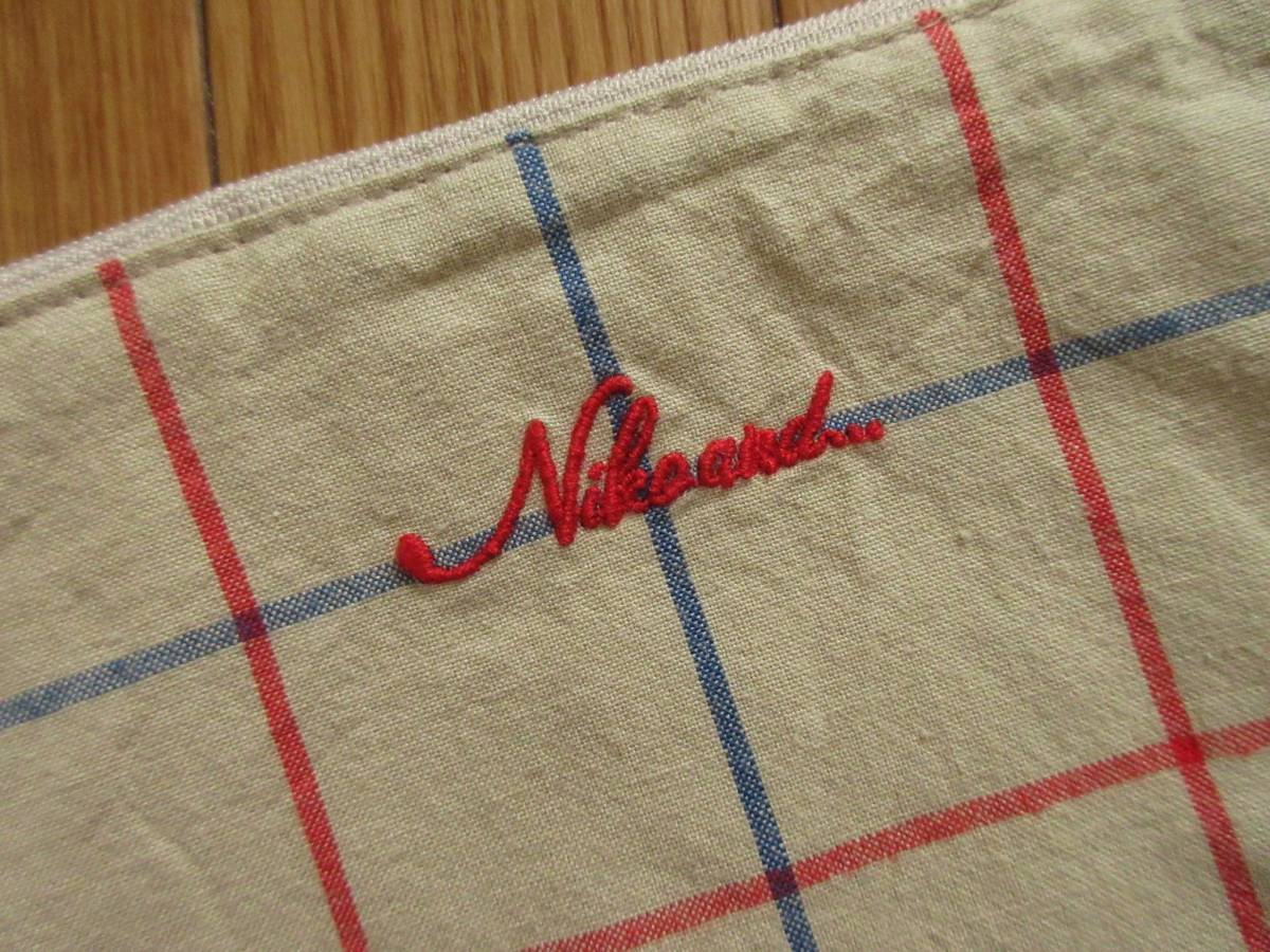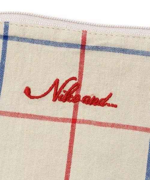 niko and... ニコアンド オリジナル 先染め ストライプ柄 ポーチ (グレー) ロゴ刺繍入り 綿100%