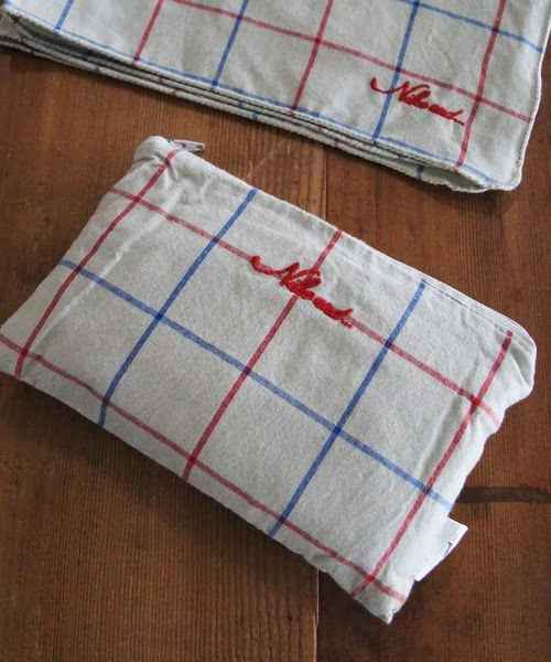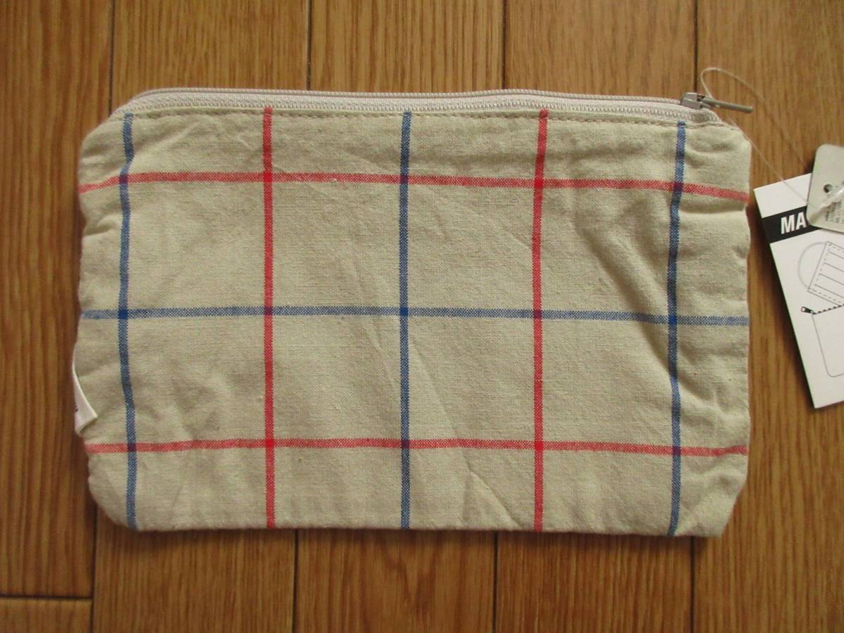特有のくたっとした生地感がかわいい、先染めコットン素材を使用したフラットポーチです。