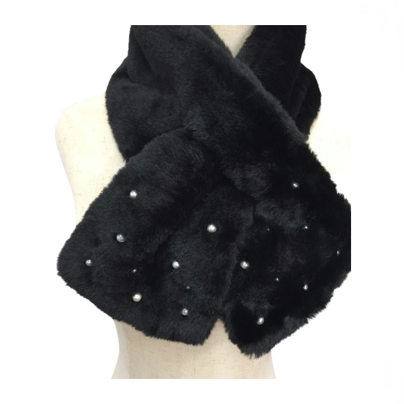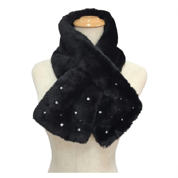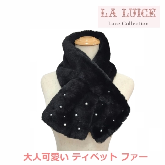 ラ・ルイス ティペット ファー ストール マフラー かわいい パール付き 暖か 防寒 軽量 ブラック 04W-FM205 ゆうパケット送料無料