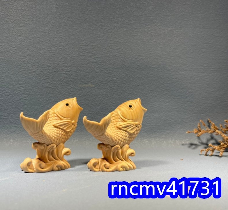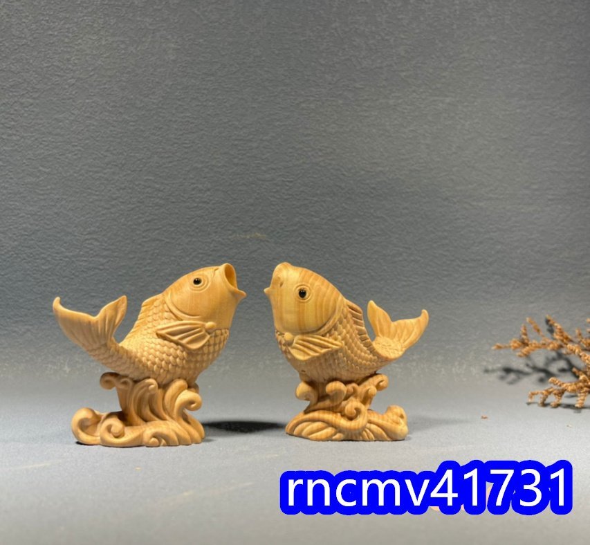 「81SHOP」極美品★天然の木 一式 木彫 魚 置物 職人手作り 彫刻工芸品