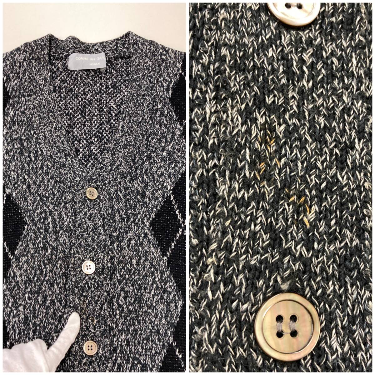 80s コムデギャルソンオム コットン ニット カーディガン アーガイル ごま塩 グレー HOMME セーター 田中オム VINTAGE archive 4010276