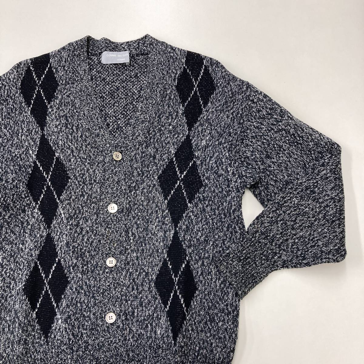 80s COMME des GARCONS HOMME コットン ニット カーディガン アーガイル ごま塩 グレー