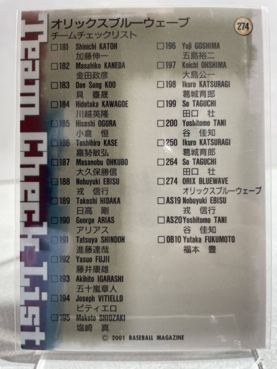 仰木彬 274 BBM 2001 チェックリスト  オリックスバッファローズ