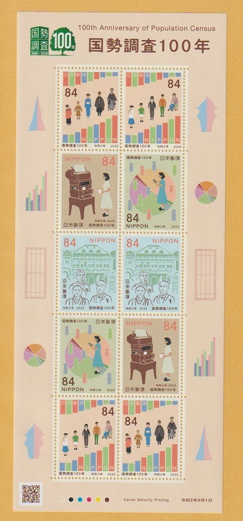 ●【記念切手】国税調査100年《84円》 切手シート 2020年  未使用