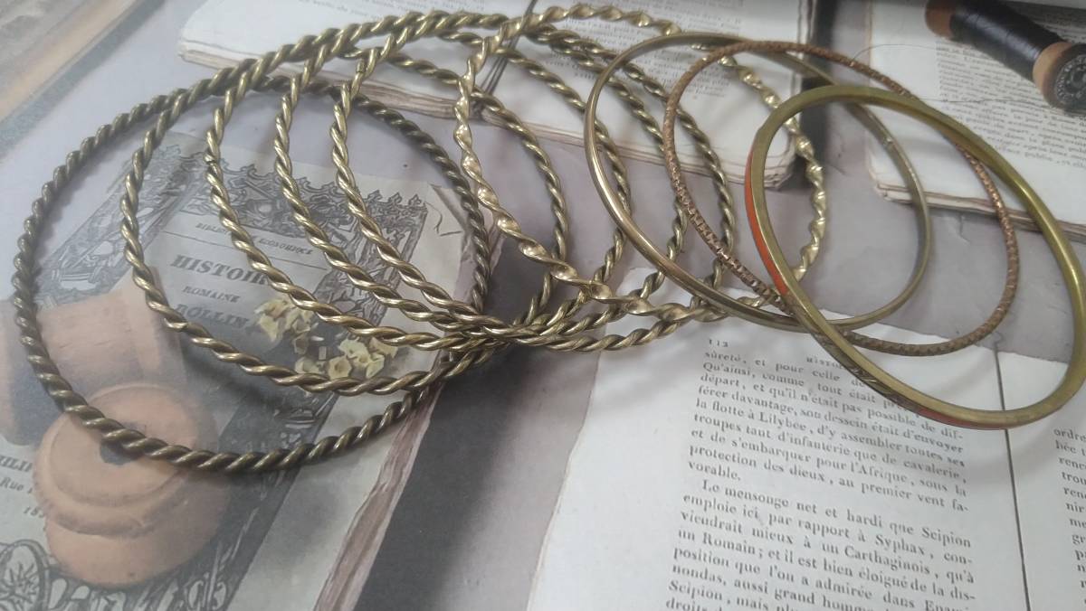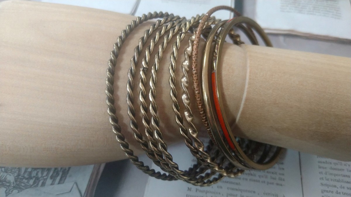 くすみゴールドカラー系 細バングル 9本セット 重ね付けにも | |||