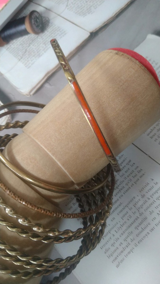くすみゴールドカラーの細バングル9本セットです 材質:不明 状態:くすみがあります ノークレーム・ノーリターンでお願い致します 管理番号10985 | |||