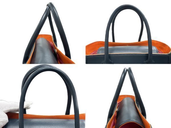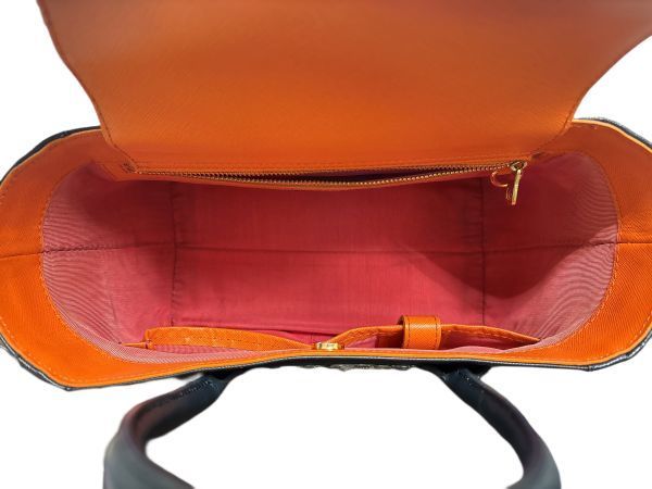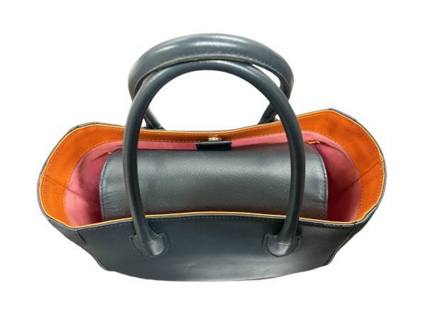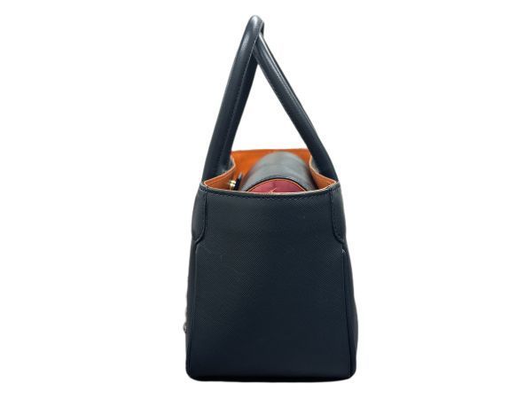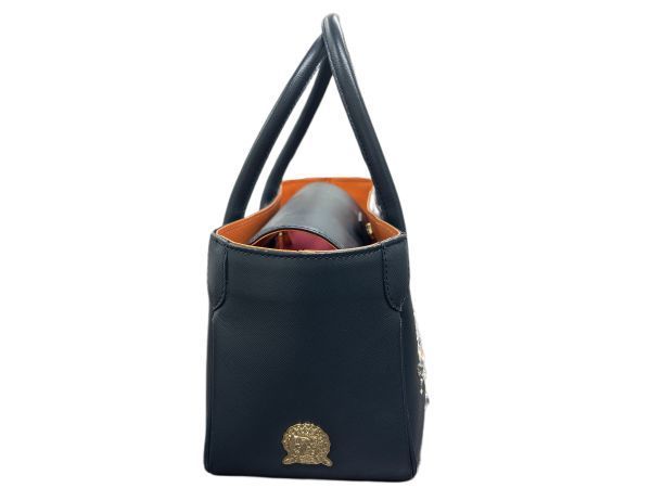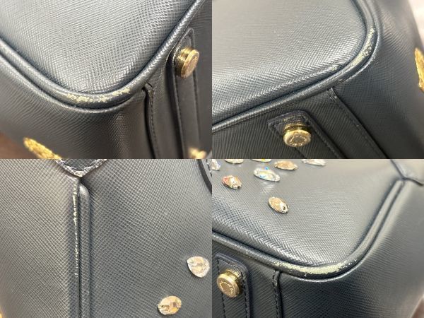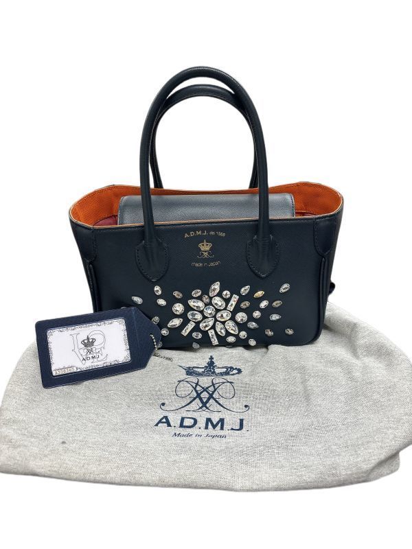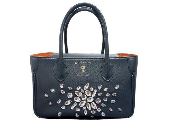 A.D.M.J. エーディーエムジェイ スワロフスキー付き ハンドバッグ ギャランティカード有 保存袋付 ネイビー/ブラック系 レディース Y