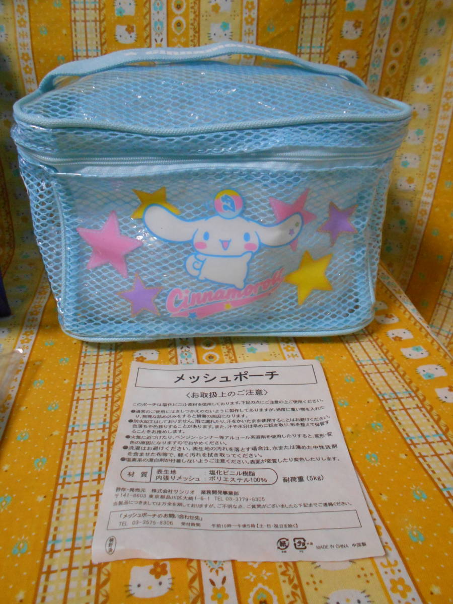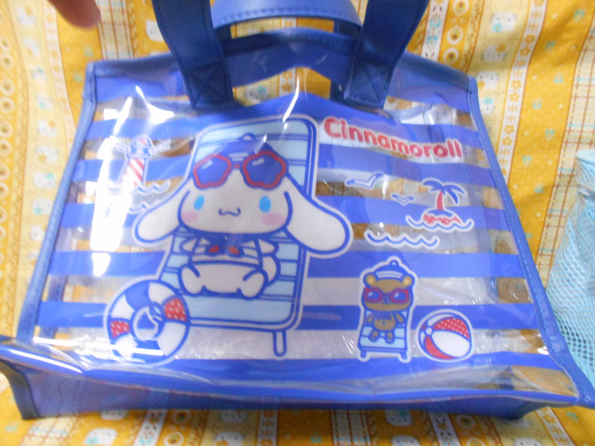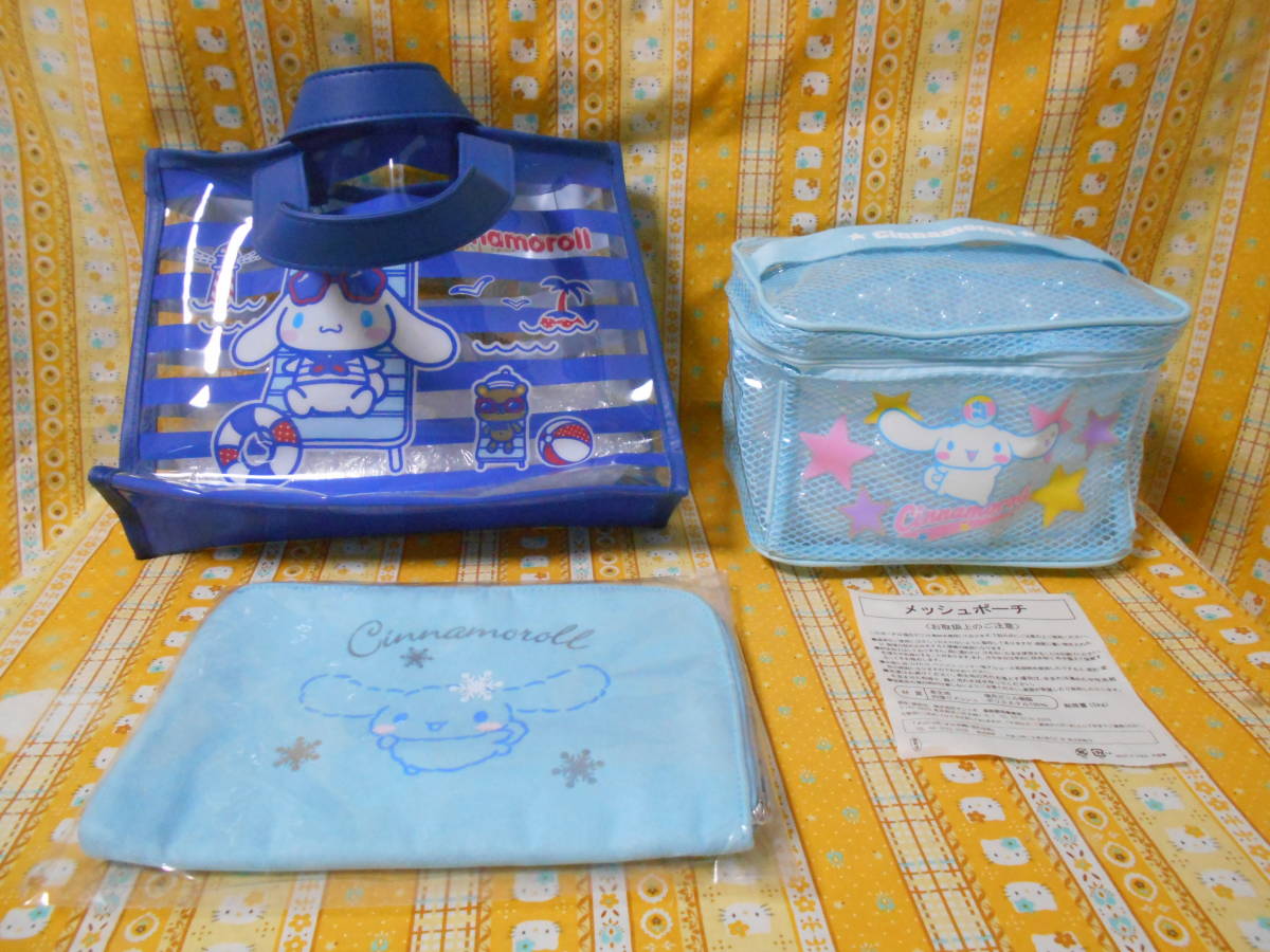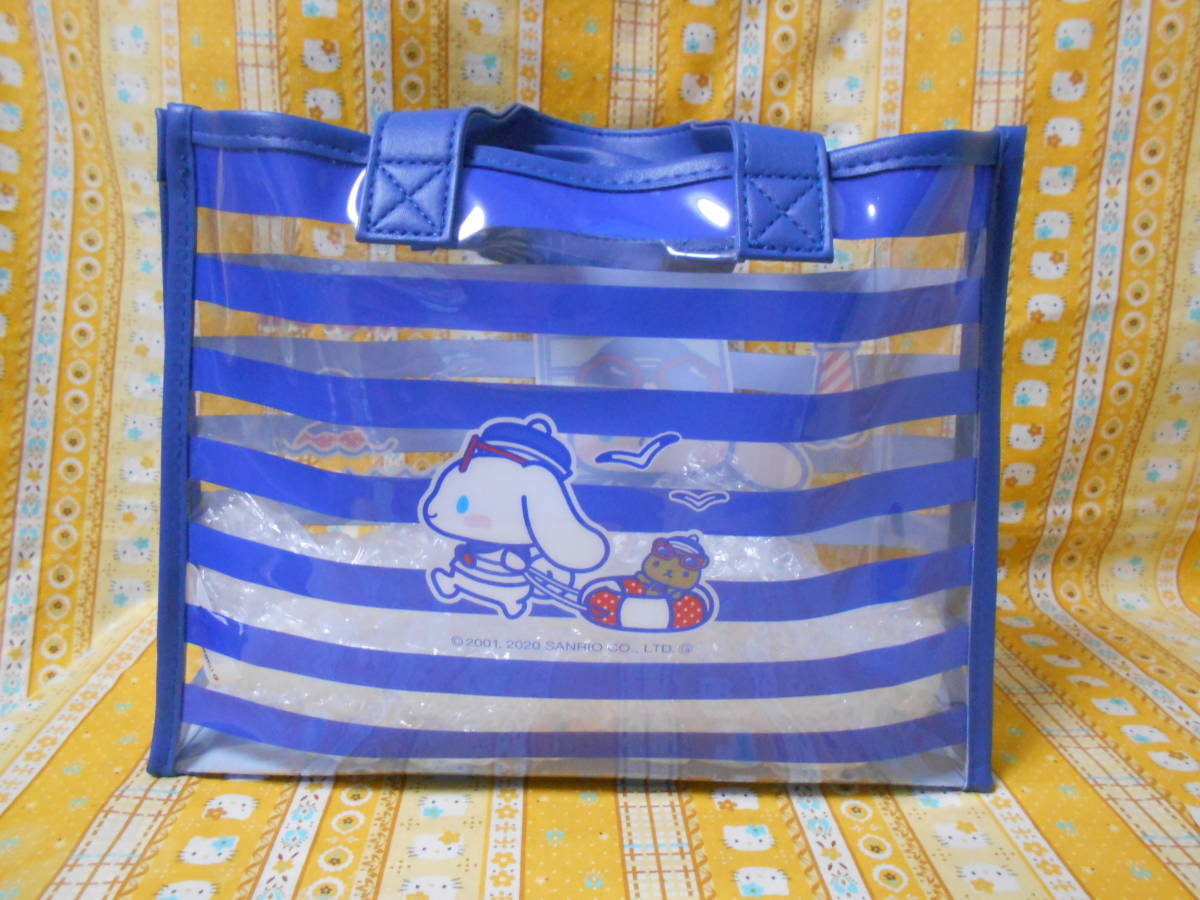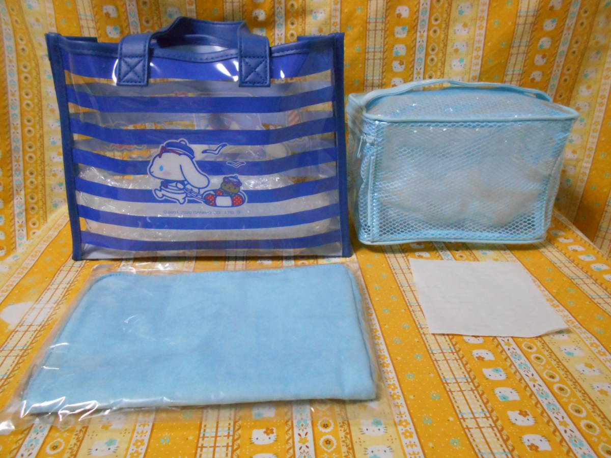 ♪シナモロール新品サンリオビニ製紺色ボーダーバッグ2020&メッシュバッグ&ポーチ2020水色