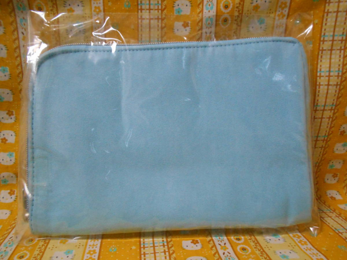 薄いポーチは縦15.5cm、横23.5cmほどの大きさでコーデュロイに近い素材のような肌触りです。