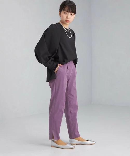 裾に入ったスリットが抜け感をプラス。スニーカーからサンダルまで合わせる足元を選ばないのも嬉しいポイントです♪