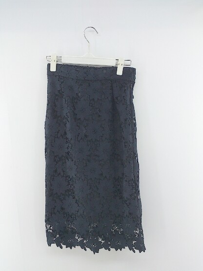 ◇ TRUDEA トルディア レース 膝下丈 タイト スカート サイズS ネイビー レディース P