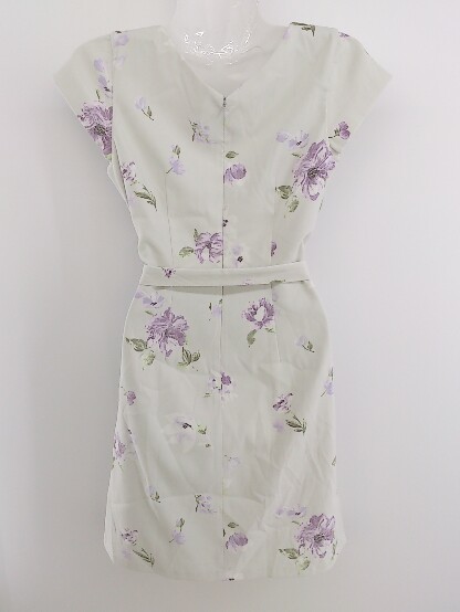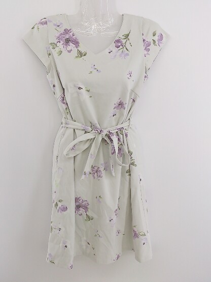 ◇ ◎ BE RADIANCE ビーラディエンス 総柄 Vネック 半袖 ミニ ワンピース サイズS ライトグレー系 マルチ レディース P