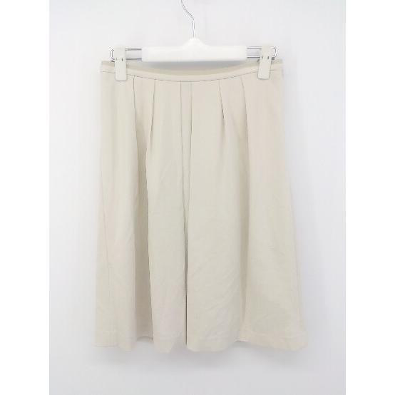 ◇ INED イネド タック 膝丈 フレア スカート サイズ7 ライトベージュ系 レディース P
