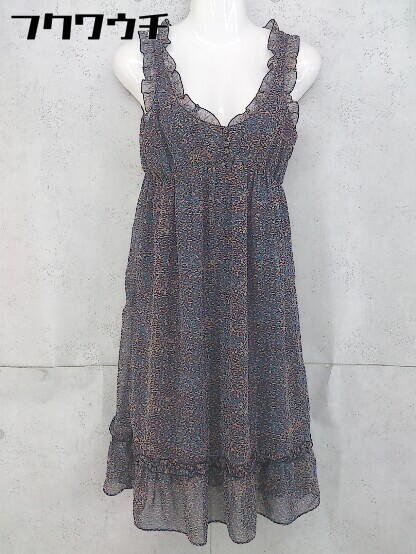 ◇ Ray BEAMS レイ ビームス 総柄 ノースリーブ 膝丈 ワンピース ネイビー マルチ レディース