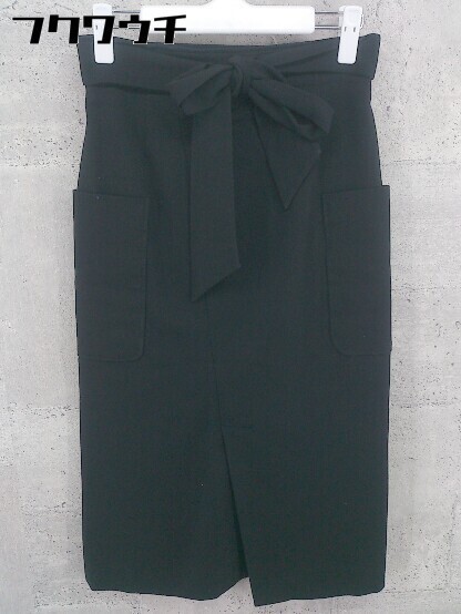 ◇ ◎ SHIPS シップス ウエストリボン付き 膝下丈 ナロー スカート サイズ36 ブラック レディース
