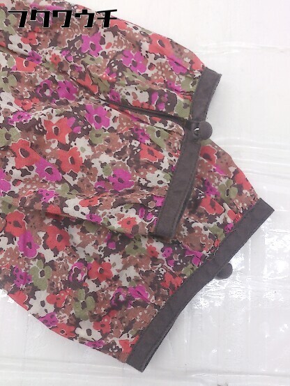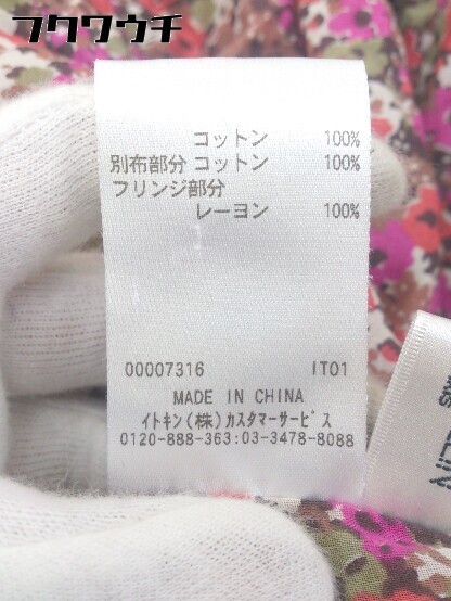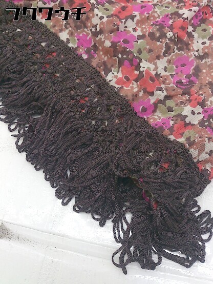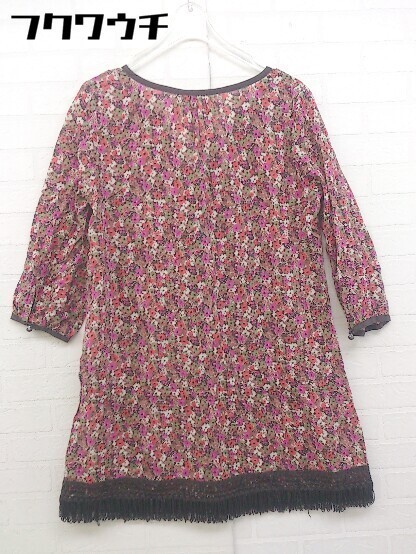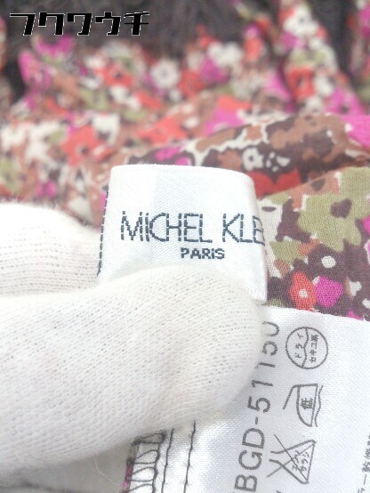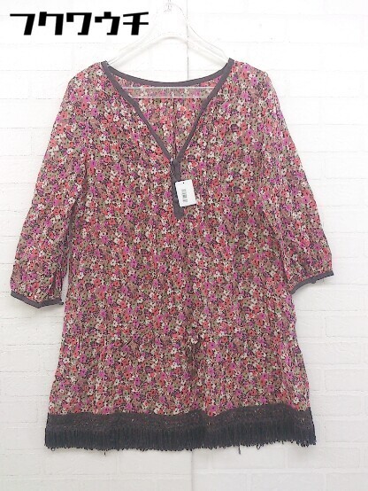 ◇ MICHEL KLEIN 花柄 フリンジ 七分袖 ブラウス カットソー サイズ 38 レッド系 ブラウン マルチ レディース
