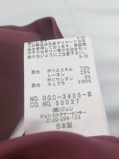 ◇ ROPE' ロペ バックジップ 膝丈 フレア スカート サイズ36 ボルドー レディース P