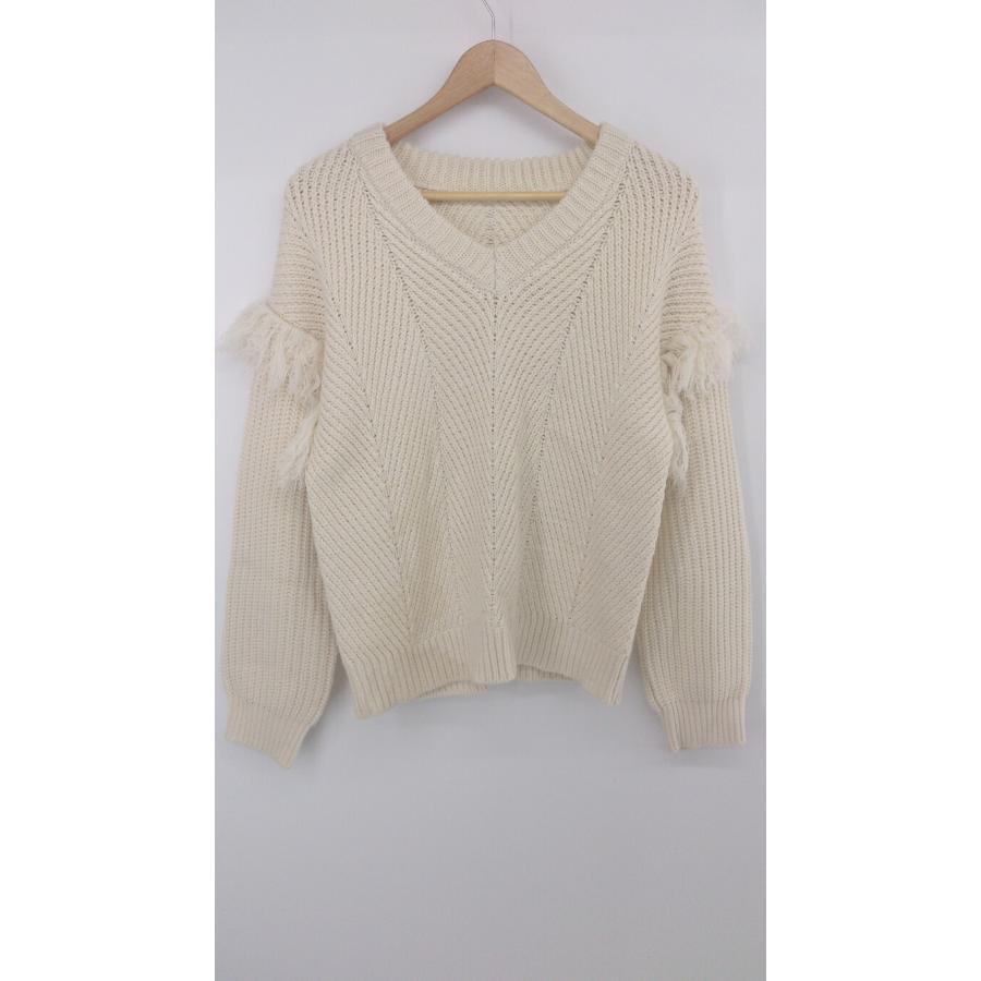 ◇ ADAM ET ROPE' Le Magasin フリンジ デザイン 長袖 ニット セーター アイボリー系 レディース P