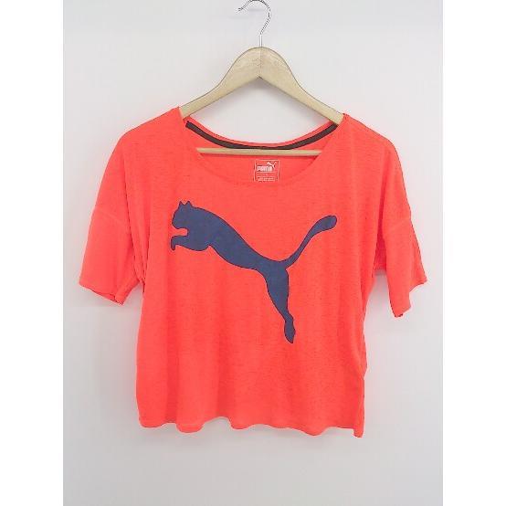 ◇ PUMA プーマ プリント 五分袖 Tシャツ カットソー サイズM レッド系 ネイビー レディース P