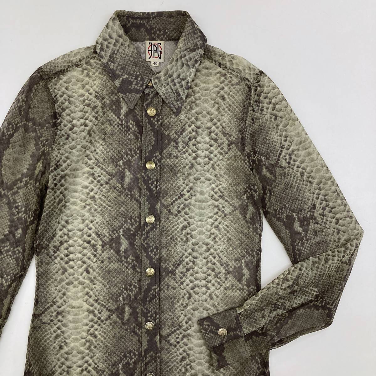パワーネット 90s JPG Jean Paul GAULTIER パイソン柄 シースルー 長袖 シャツ ブラウス ジャンポールゴルチエ 蛇 VINTAGE archive 3120349