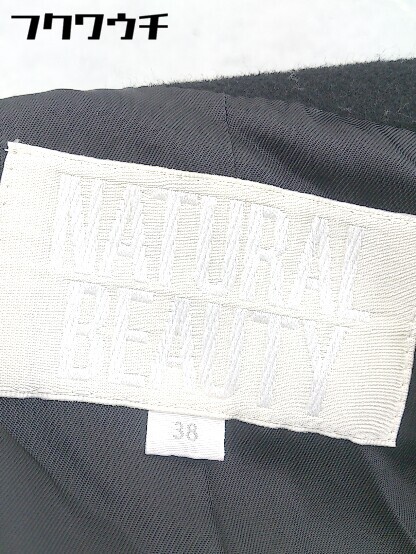 ■ ◎ NATURAL BEAUTY ナチュラルビューティー ウエストベルト付 長袖 コート サイズ38 ブラック レディース