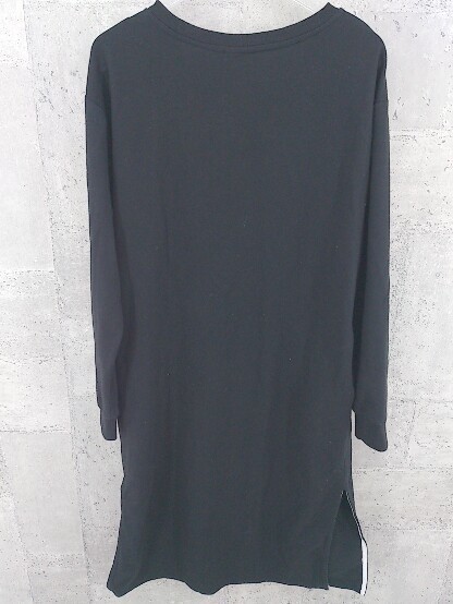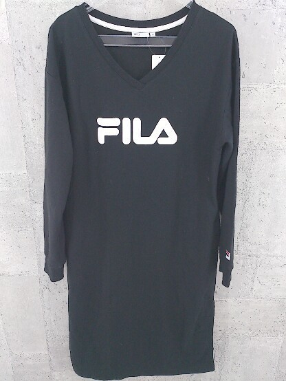 ◇ FILA フィラ ロゴ プリント 長袖 膝下丈 ワンピース M ブラック レディース