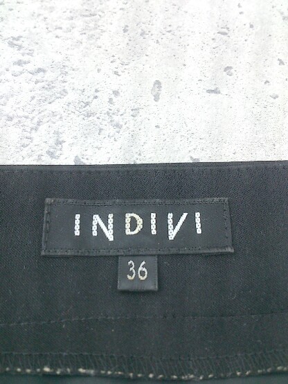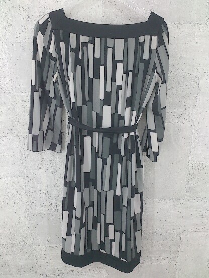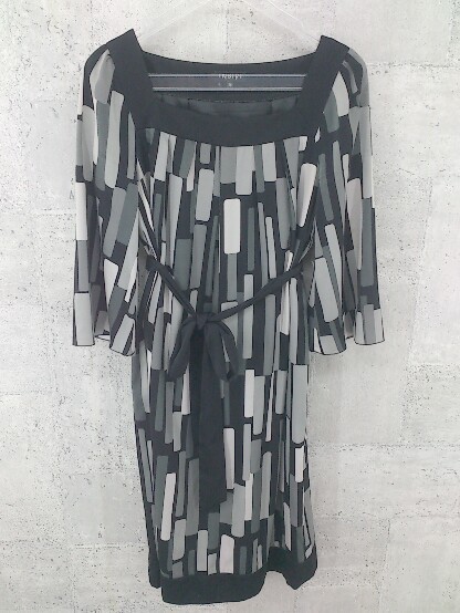 ◇ INDIVI インディヴィ 総柄 ベルト付 五分袖 膝丈 ワンピース 36 ブラック グレー レディース