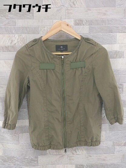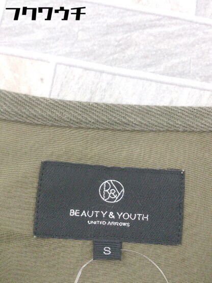 ◇ BEAUTY & YOUTH UNITED ARROWS 薄手 ジップアップ 七分袖 ノーカラー ジャケット サイズS カーキ レディース
